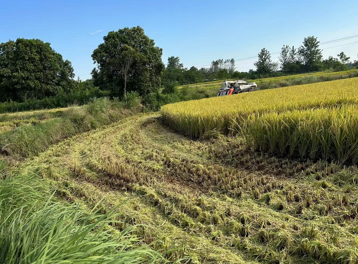 8月30日上午,羅店鎮(zhèn)養(yǎng)馬畈村三組的田間,5輛收割機(jī)正在加班加點(diǎn)收割中稻,與傳統(tǒng)收割機(jī)不同的是,這幾臺(tái)農(nóng)機(jī)收割過的田塊,留茬約在10公分,秸稈也整整齊齊碼在田間?!巴晔崭畹臅r(shí)候,留茬太高,田塊后續(xù)翻