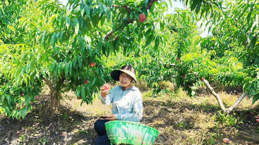 果園里,郁郁蔥蔥的桃樹(shù)上綴滿著桃子,一個(gè)個(gè)色澤鮮艷、飽滿紅潤(rùn),前來(lái)采摘鮮桃的游客絡(luò)繹不絕。大家手提竹籃,在桃林間穿梭,盡情享受田園采摘樂(lè)趣。