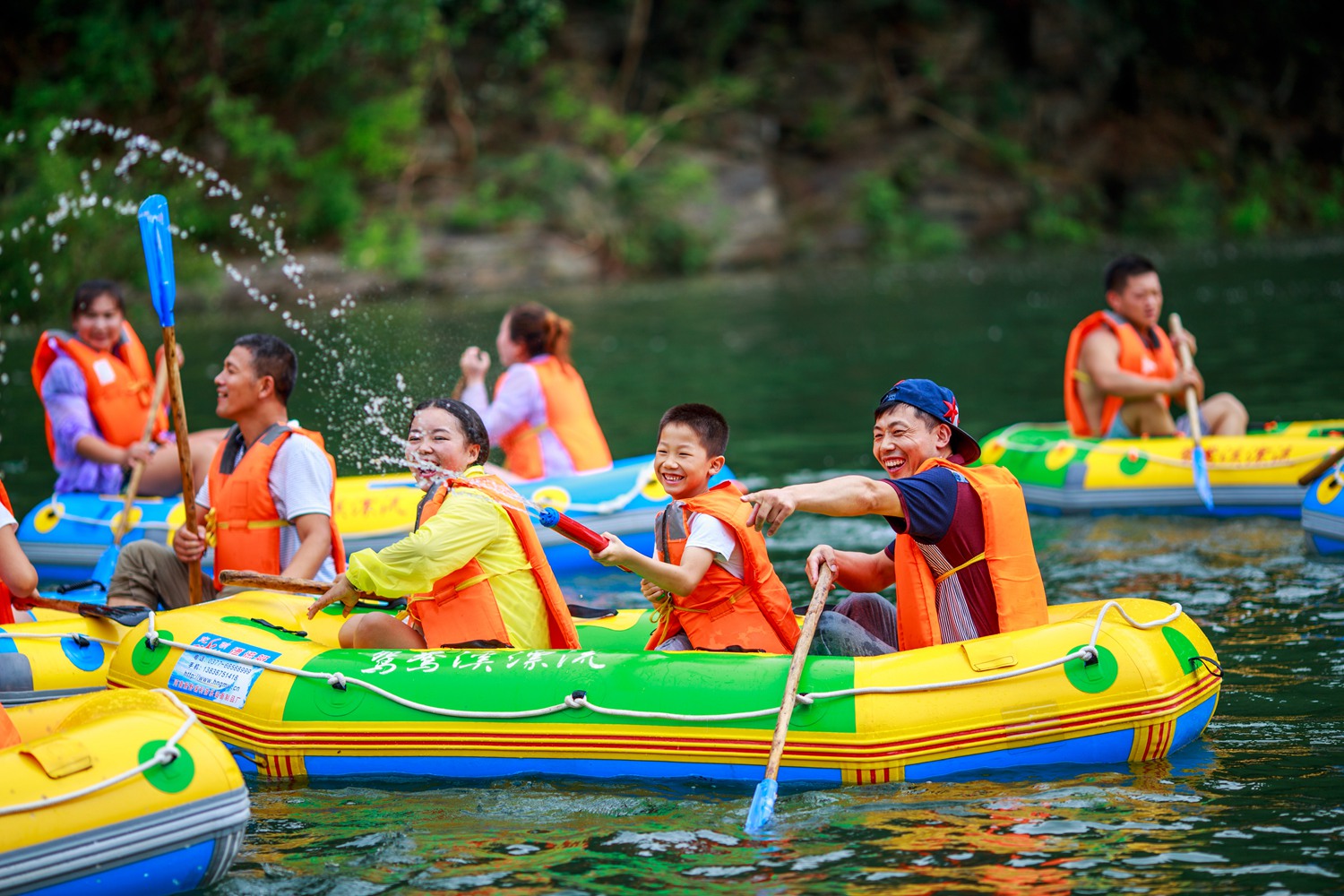 “滑道沖刺時心都提到嗓子眼,緩下來抬頭就是青山疊翠,孩子打水仗玩得舍不得走!”來自隨州的李先生抹著臉上的水珠,語氣里滿是暢快。盛夏的鴛鴦溪漂流河道上,皮艇在蜿蜒溪谷中穿梭,水槍對戰(zhàn)的吶喊撞響峽谷,清涼水花濺起一路歡笑,這是綠林鎮(zhèn)夏日最鮮活的風景。