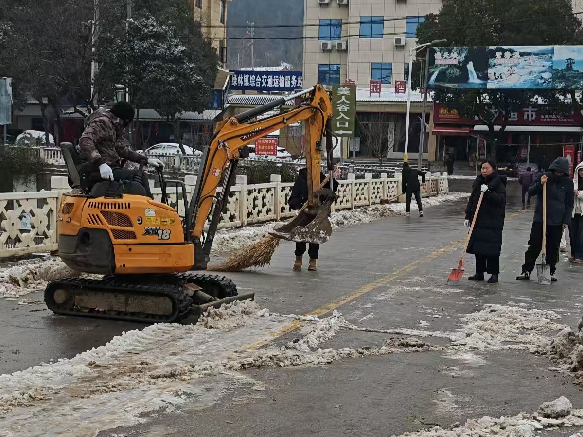 1月20日,綠林鎮(zhèn)組織機(jī)關(guān)干部開展掃雪除冰行動(dòng),為群眾打通“安全通道”。