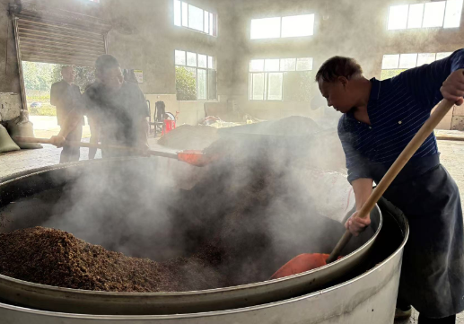 11月8日早晨,坪壩老街酒廠已沉浸在一片繁忙而有序的氛圍中?! ∽哌M酒廠生產(chǎn)區(qū),精選原料經(jīng)過高溫蒸煮,散發(fā)出陣陣濃郁的香氣。工人們小心翼翼地把控著時間,確保每一個鍋爐都能充分釋放風味。每個環(huán)節(jié)都需