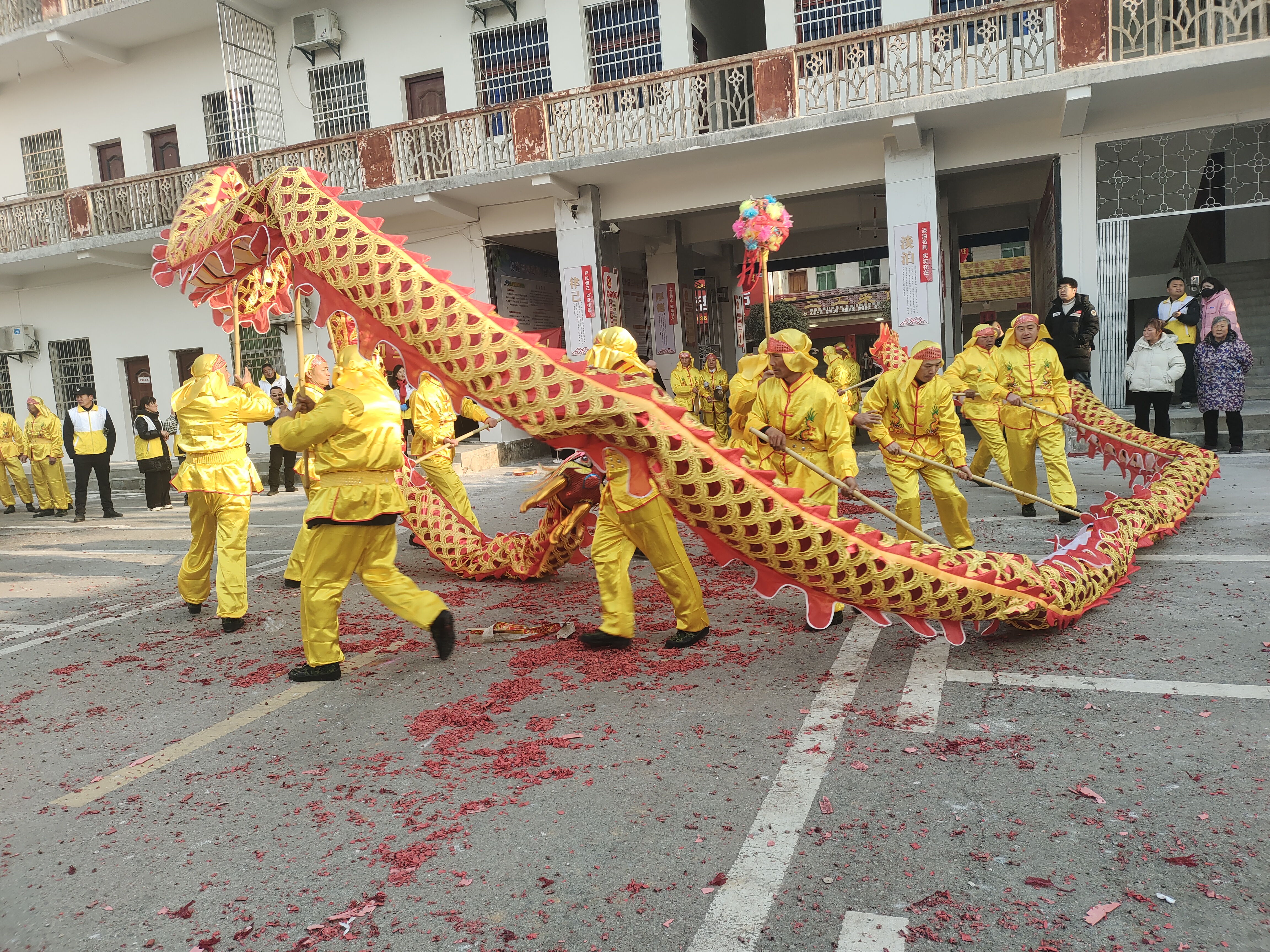 據(jù)悉,此次活動(dòng)由去年的一條龍燈增加到兩條,寓意著喜上加喜,好事成雙。在演出前一個(gè)月,鎮(zhèn)文體站組織舞龍隊(duì)每天練習(xí),熟悉隊(duì)形、動(dòng)作,確保為村民呈現(xiàn)一場精彩的視覺盛宴。