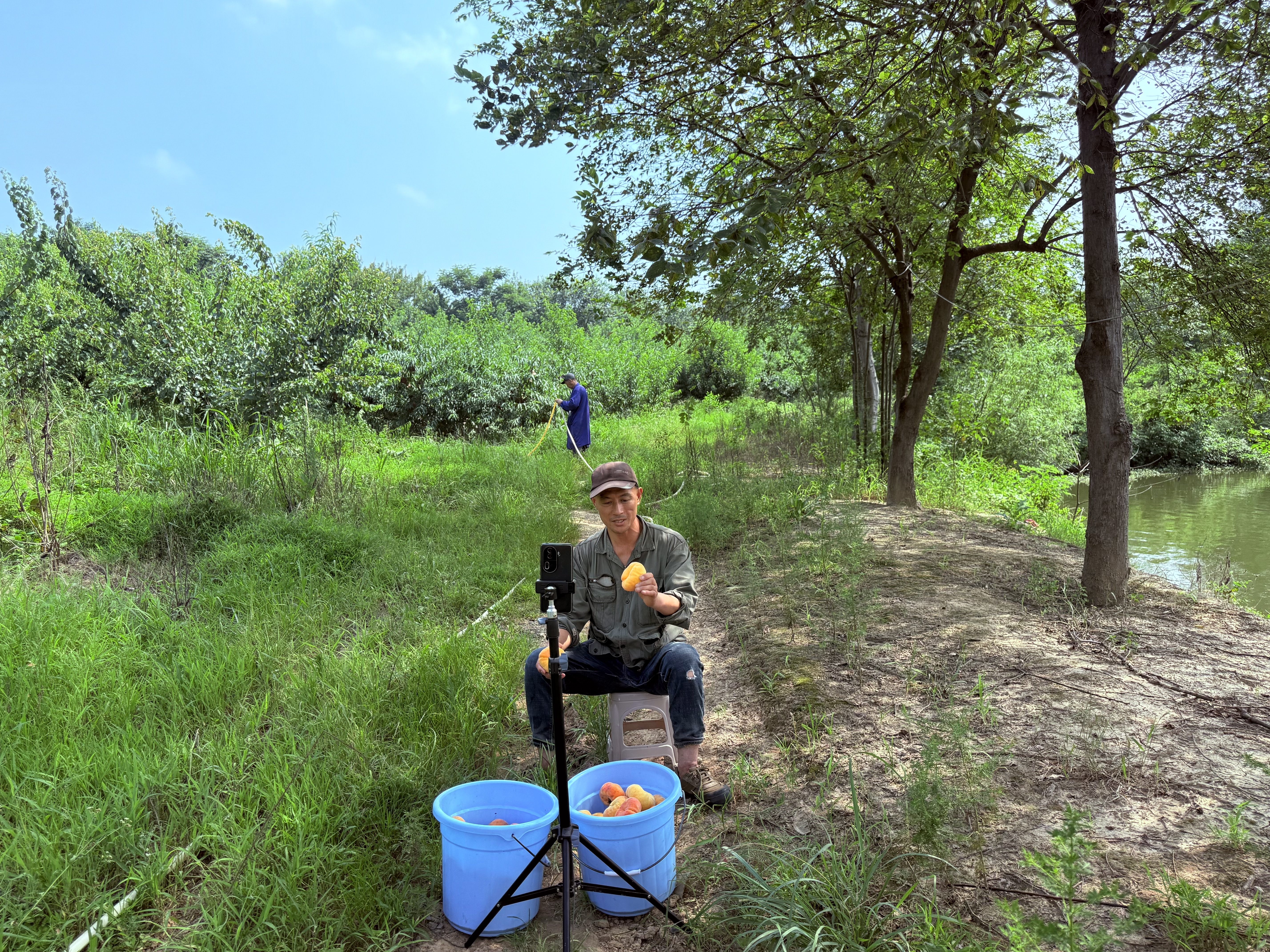 坪壩鎮(zhèn)和平村黃桃采摘園開啟直播助農(nóng)