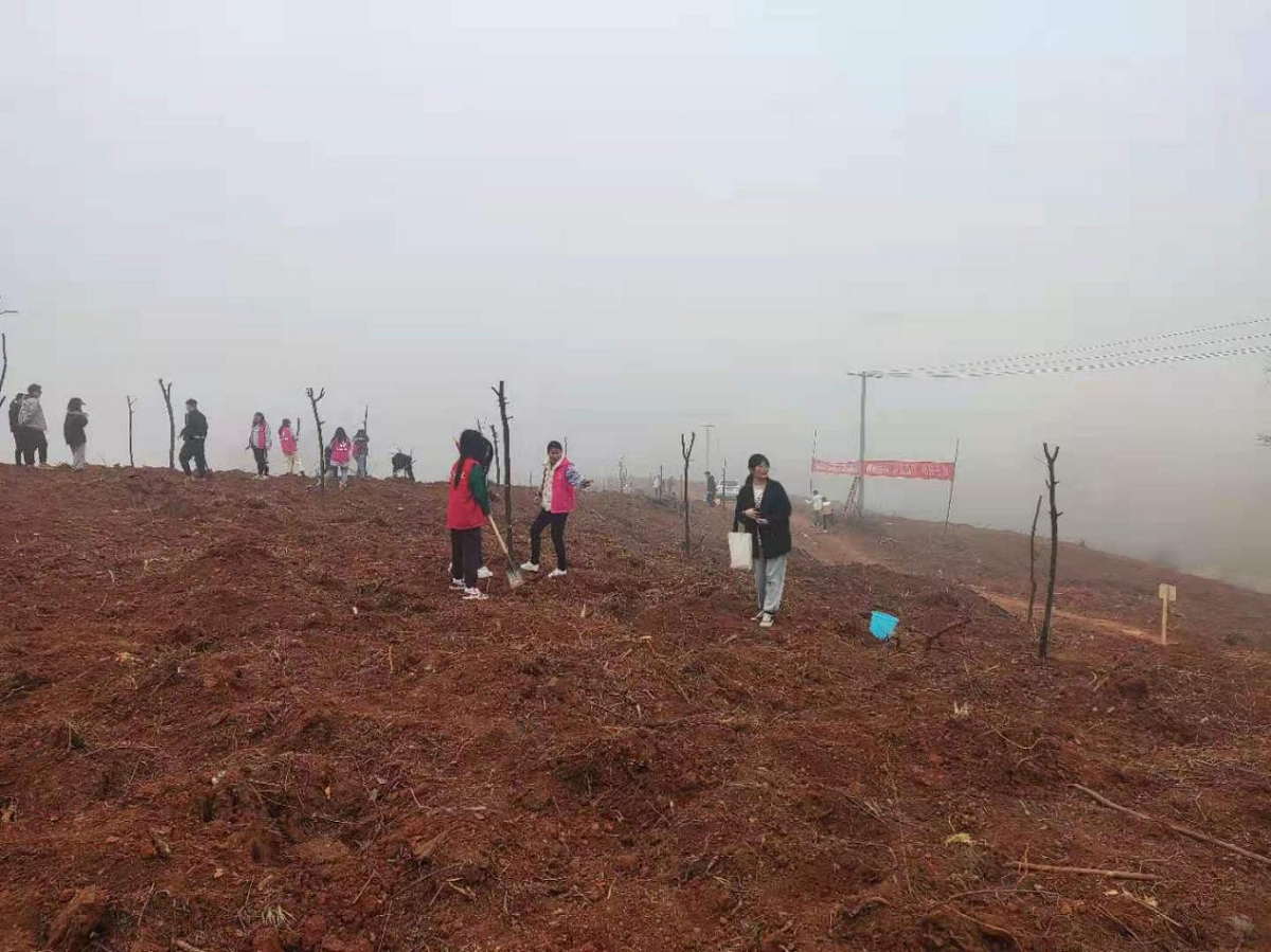 宋河鎮(zhèn)組織志愿者開展植樹造林活動揮锨挖窩,扶樹正苗,培土壓實(shí),踩土固苗,提水澆灌……3月9日,在坐落于大富水之濱的宋河鎮(zhèn)胡家城村一個(gè)叫“劉家?guī)r子”的山坡上,來自該鎮(zhèn)的機(jī)關(guān)干部、鎮(zhèn)直單位職工以及志愿者共