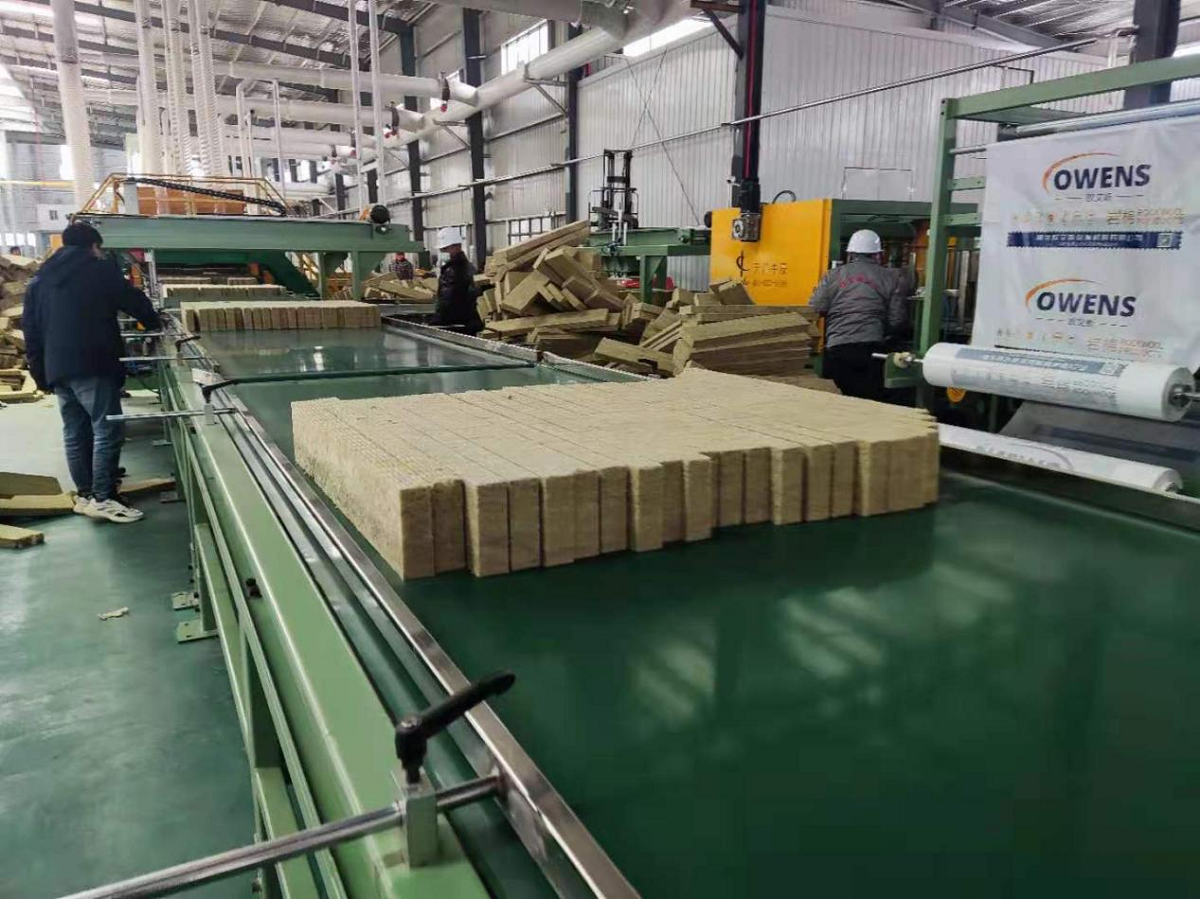 宋河歐文斯巖棉產(chǎn)業(yè)園第一塊保溫防火巖棉板順利下線
