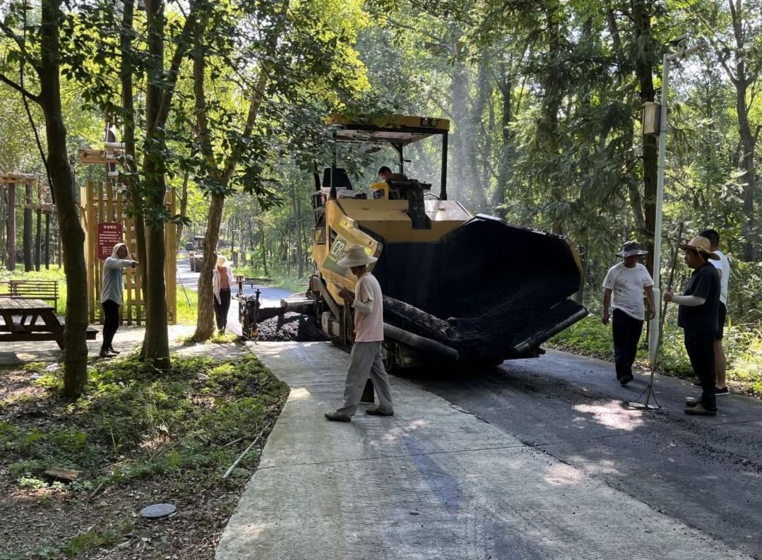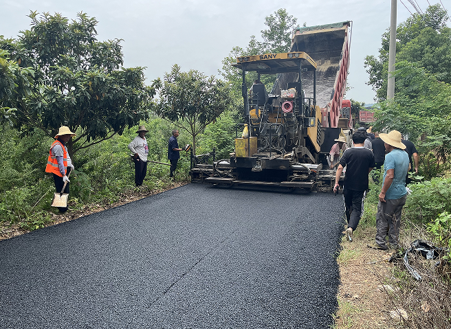 8月19日,在通往潼泉湖休閑旅游區(qū)的村組道路上,改造提升工程正在如火如荼進(jìn)行?! ‖F(xiàn)場機(jī)器轟鳴,攤鋪機(jī)正在鋪設(shè)瀝青,壓路機(jī)緊跟碾壓成形,工人們對邊角料清除抹平。此次提檔升級路段全長3公里,預(yù)計3個