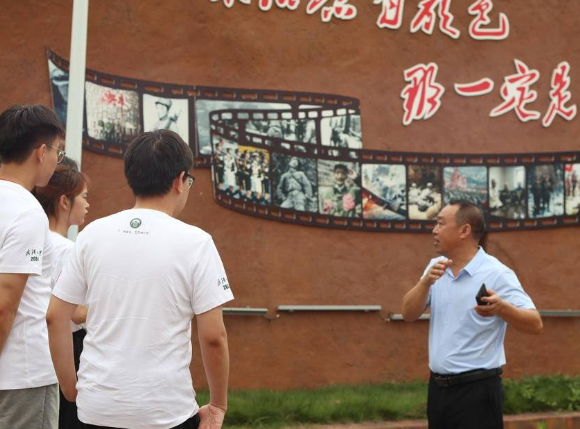 7月20日,“武大研行”湖北京山實(shí)踐隊(duì)8名隊(duì)員到新市街道八字門(mén)村參觀學(xué)習(xí)。