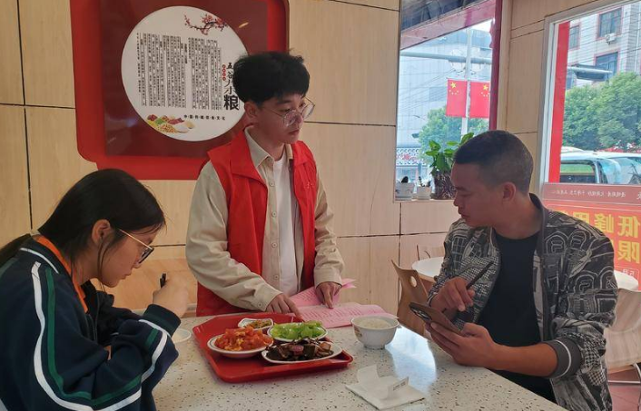 10月15日,新市街道東關(guān)社區(qū)新時(shí)代文明實(shí)踐站志愿者走上街頭,對(duì)轄區(qū)居民和20多家個(gè)體餐飲店開展文明餐桌“光盤行動(dòng)”宣傳活動(dòng),在社區(qū)掀起了一股節(jié)約糧食的熱潮?! ≈形?1點(diǎn),正值就餐高峰期。社區(qū)工