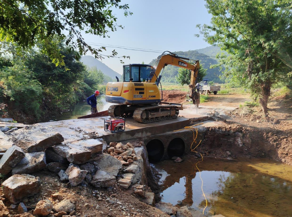 8月20日,在新市街道陳八字村四組漫水橋修復(fù)工程施工現(xiàn)場(chǎng),施工人員正搶抓晴好天氣,全力加快施工進(jìn)度,確保在最短時(shí)間內(nèi)修好漫水橋便道?! ?月中旬以來(lái),持續(xù)的強(qiáng)降水天氣造成四組漫水橋道路存在安全隱