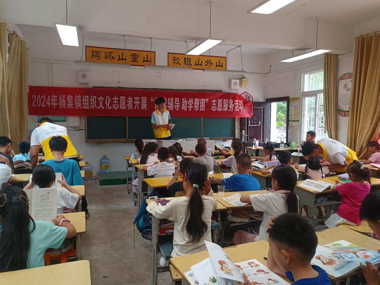 7月18日,楊集鎮(zhèn)文體站聯(lián)合鎮(zhèn)新時(shí)代文明實(shí)踐所,組織湖北第二師范學(xué)院大學(xué)生文化志愿者,在楊集中小學(xué)開展“閱讀輔導(dǎo),助學(xué)幫困”志愿服務(wù)活動(dòng)。志愿者們通過(guò)故事分享,對(duì)孩子們進(jìn)行閱讀輔導(dǎo),幫助他們掌握正確的