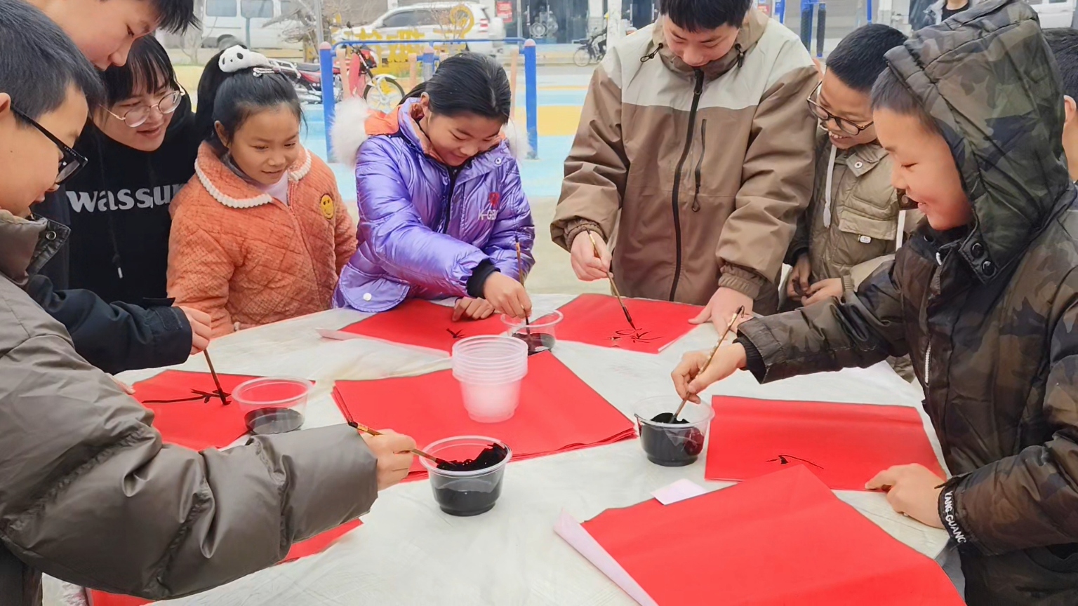 孩子們也圍聚在案前,在書法家的悉心指導(dǎo)下提筆學(xué)藝,一筆一劃認(rèn)真地寫下自己對(duì)新春的期盼,體驗(yàn)著傳統(tǒng)文化的魅力。