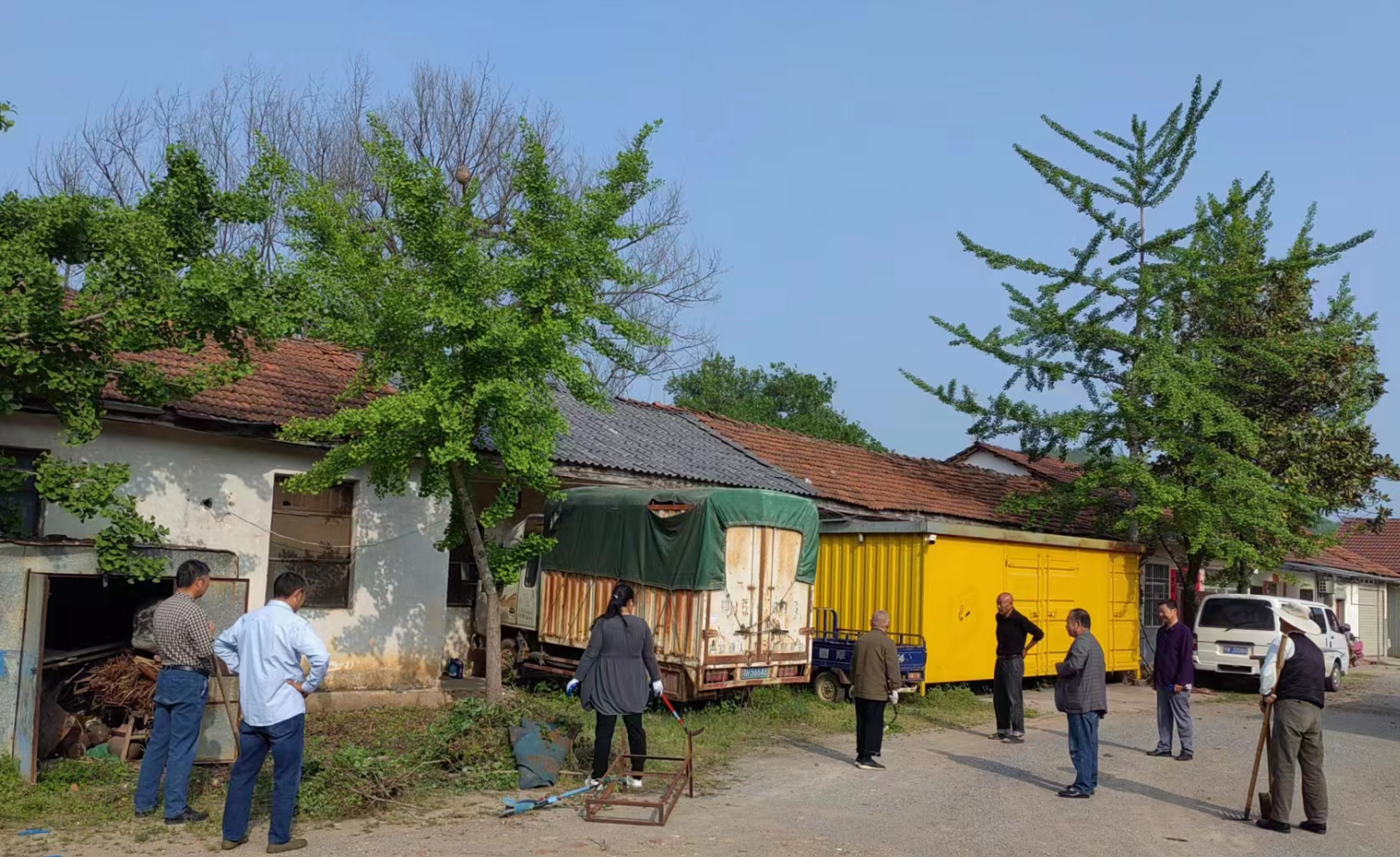 社區(qū)干部和鄉(xiāng)賢們商議公共區(qū)域整治方案 4月25日上午,走進楊集鎮(zhèn)原供銷社大院,院內公共區(qū)域干凈通透,居民門前雜物擺放整齊?! ≡撴?zhèn)楊集街社區(qū)黨支部書記晏化成介紹道:“這個院落整治了近一個星期,效