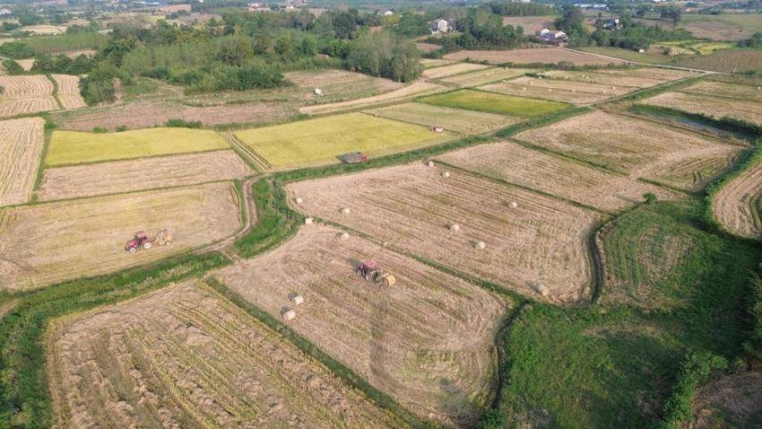 9月9日,在雁門口鎮(zhèn)高墩村剛收割過的稻田里,四臺(tái)秸稈打捆機(jī)忙得熱火朝天。在隆隆的轟鳴聲中,散落在田間的水稻秸稈被“吃”進(jìn)打捆機(jī)里,經(jīng)過旋轉(zhuǎn)、壓縮、捆綁……最后一個(gè)個(gè)整齊的圓柱形草垛被“吐”出來,橫七豎