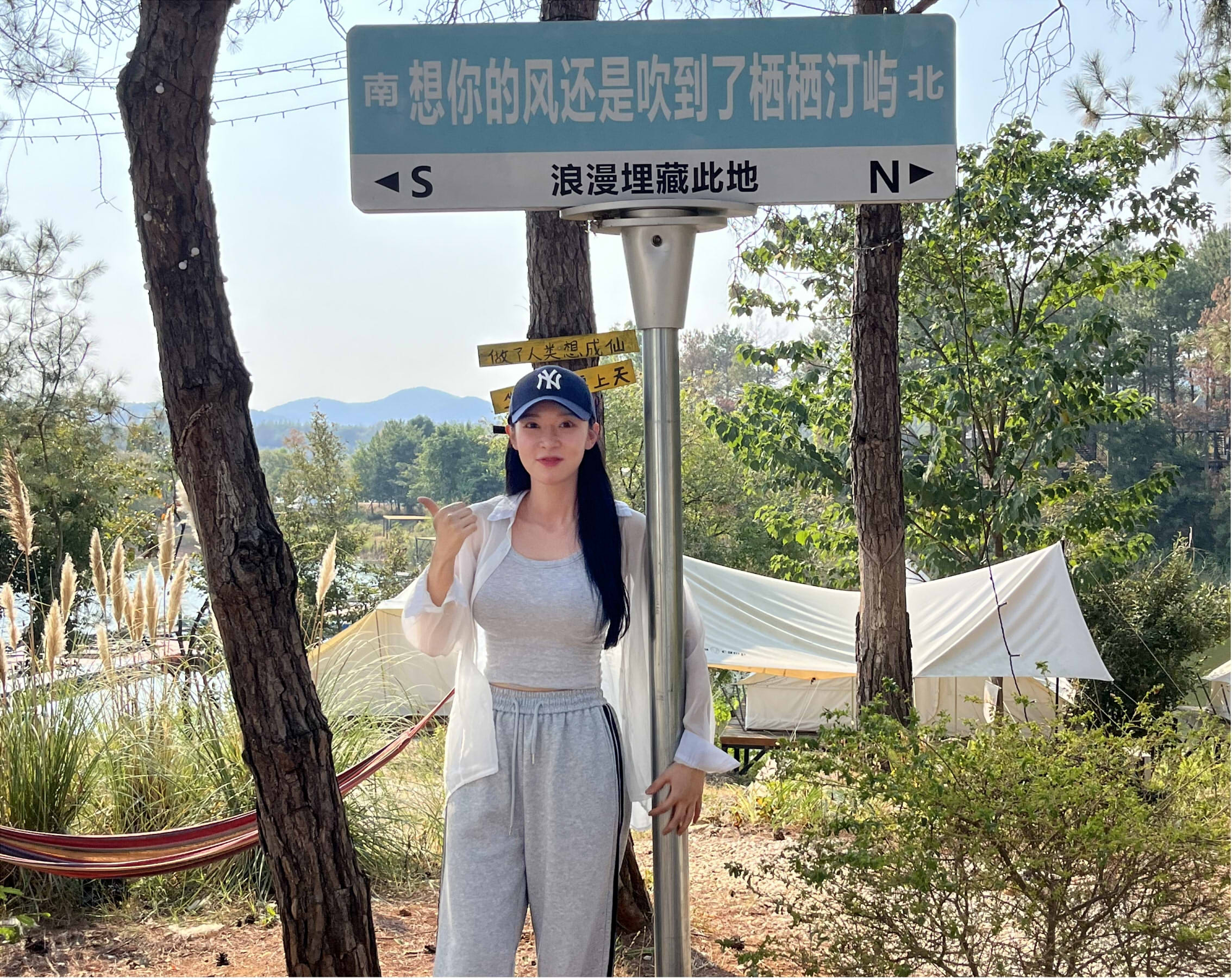 “這里路亞釣魚、天幕帳篷、戶外燒烤等玩點很多,漫步山野間,景色非常不錯,一處郊野、一片時光,我在這里等你哦……”在精致帳篷內(nèi),安貞恩正趁休息時為粉絲作宣傳推廣。