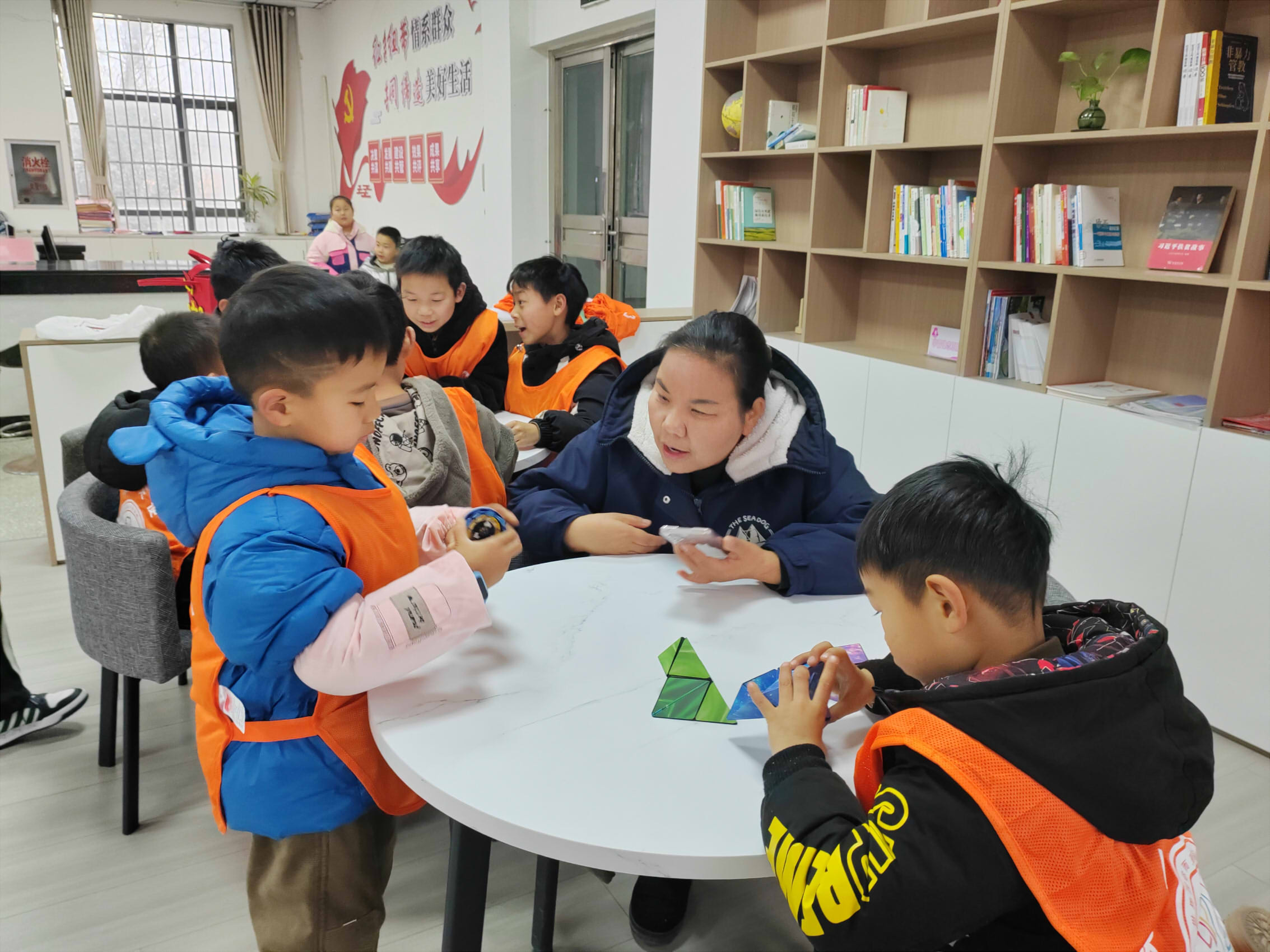 活動中,2名“愛心媽媽”帶領(lǐng)孩子們下圍棋、做手工,通過托、管、教、帶等方式,與孩子們面對面交流、心貼心互動,鼓勵他們多學(xué)習(xí)、多觀察,用寓教于樂的方式鍛煉了孩子的動手能力和團隊合作意識。