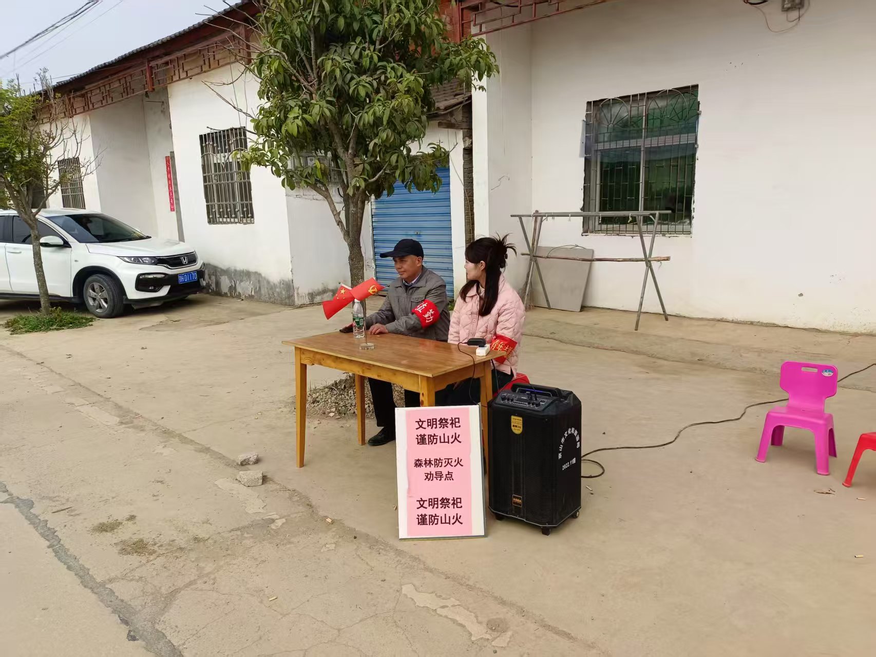 永興街道動(dòng)員黨員干部、防火隊(duì)員、志愿者、熱心村民等力量,通過入戶宣傳、LED電子屏播放、流動(dòng)巡邏車?yán)?、村民微信群轉(zhuǎn)發(fā)圖文視頻、開展“小手拉大手”活動(dòng)、播放森林防火公益電影、張貼禁火令等形式,全方位、全覆蓋開展森林防火和文明祭祀宣傳。在進(jìn)山口、路口等重要卡口設(shè)置崗哨桌,專人佩戴紅袖章、懸掛橫幅標(biāo)語、使用喇叭不間斷播放宣傳標(biāo)語,引導(dǎo)群眾樹立文明祭掃觀念,自覺防范違規(guī)用火行為。