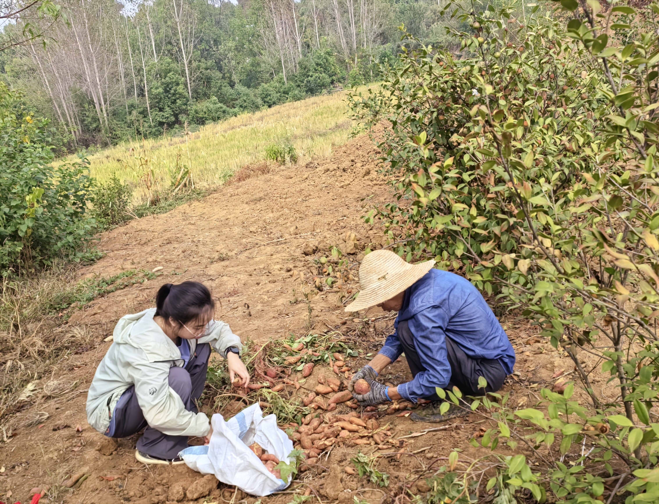 “感謝村里的妙招,也感謝挖機(jī)師傅和包村干部的幫忙,我這將近10斤的小紅薯也算是提前收獲了!村里修溝渠是好事,我收拾完田里就給大家騰出地方來(lái),方便施工方通行……”10月18日,永興街道潘嶺村一組村民