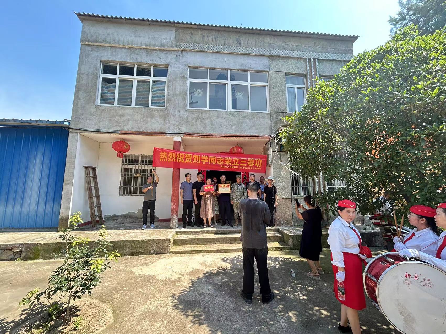 7月24日,伴隨著陣陣掌聲和鼓聲,永興街道觀音村充滿了喜慶的氛圍,市人武部、退役軍人事務(wù)局慰問組為上半年榮立三等功的現(xiàn)役軍人劉學(xué)家庭送上了立功喜報。慰問組與現(xiàn)役軍人家屬親切交談,感謝他們?yōu)椴筷犦斔土藘?yōu)