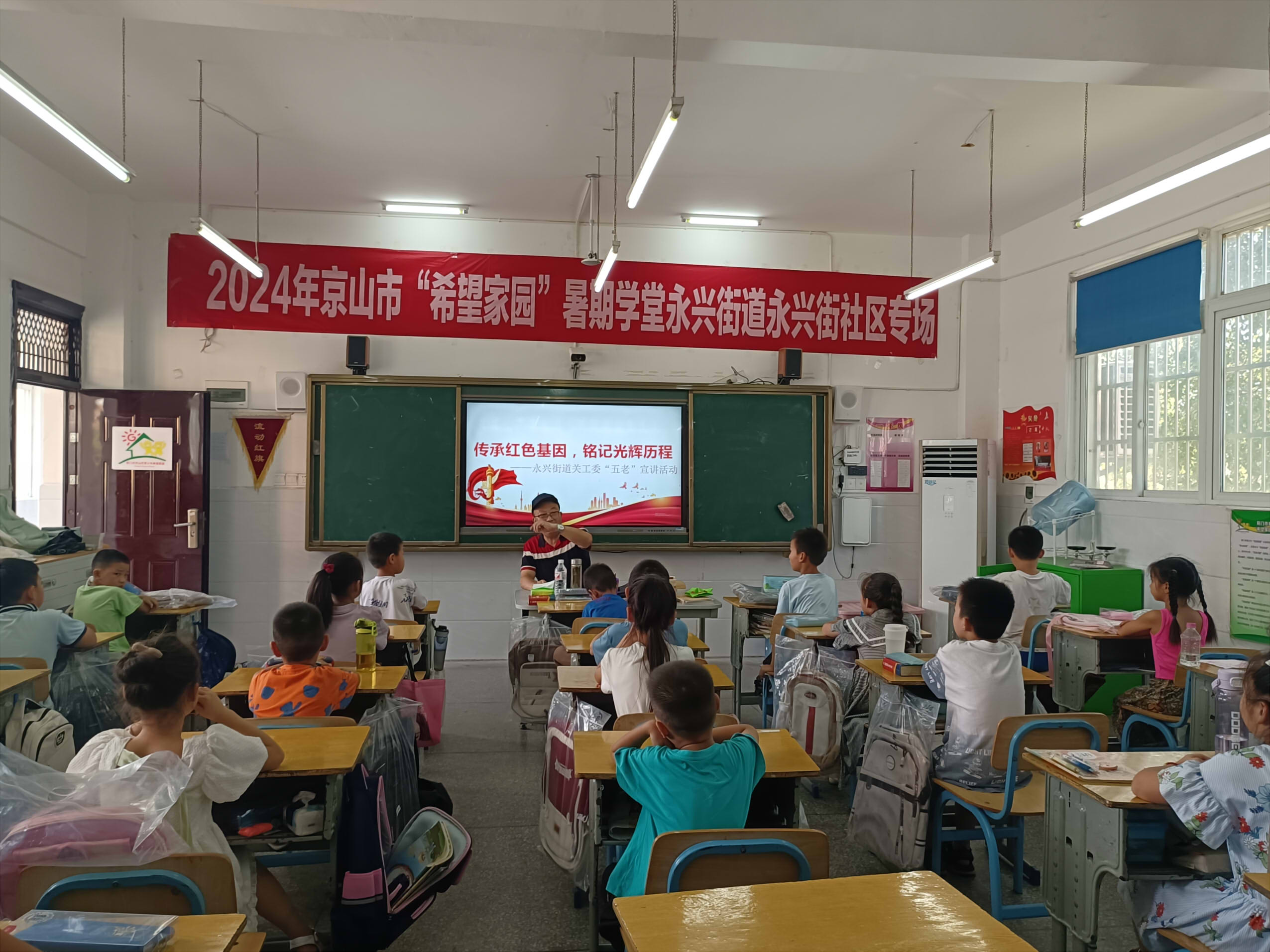 7月26日,永興街道關(guān)工委組織“五老”人員、退休老教師程本勝,前往永興街社區(qū)“希望家園”暑假學(xué)堂點,為近30名兒童講述了一堂主題為“傳承紅色基因,銘記光輝歷程”的歷史課?!昂⒆觽?,很多年前,當(dāng)時你們的