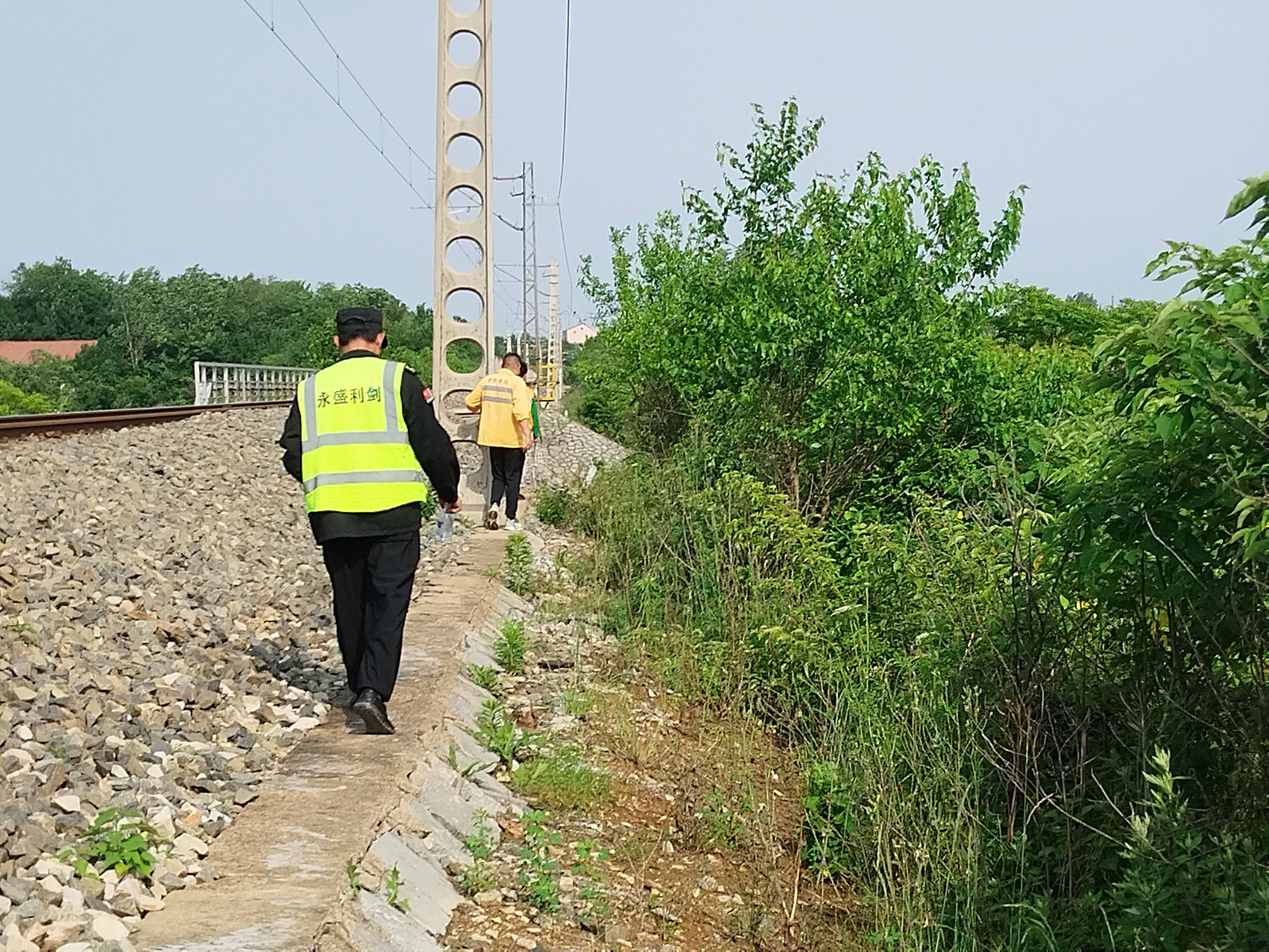 “要加強(qiáng)宣傳引導(dǎo),檢查路段兩側(cè)的防護(hù)網(wǎng)、警示標(biāo)志牌,防止閑雜人員進(jìn)入防護(hù)網(wǎng)、穿越鐵路,影響行車安全……”6月17日,永興街道平安辦組織鐵路護(hù)路巡邏隊(duì)員在群光村開展鐵路護(hù)路安全巡查。為維護(hù)轄區(qū)鐵路沿線治