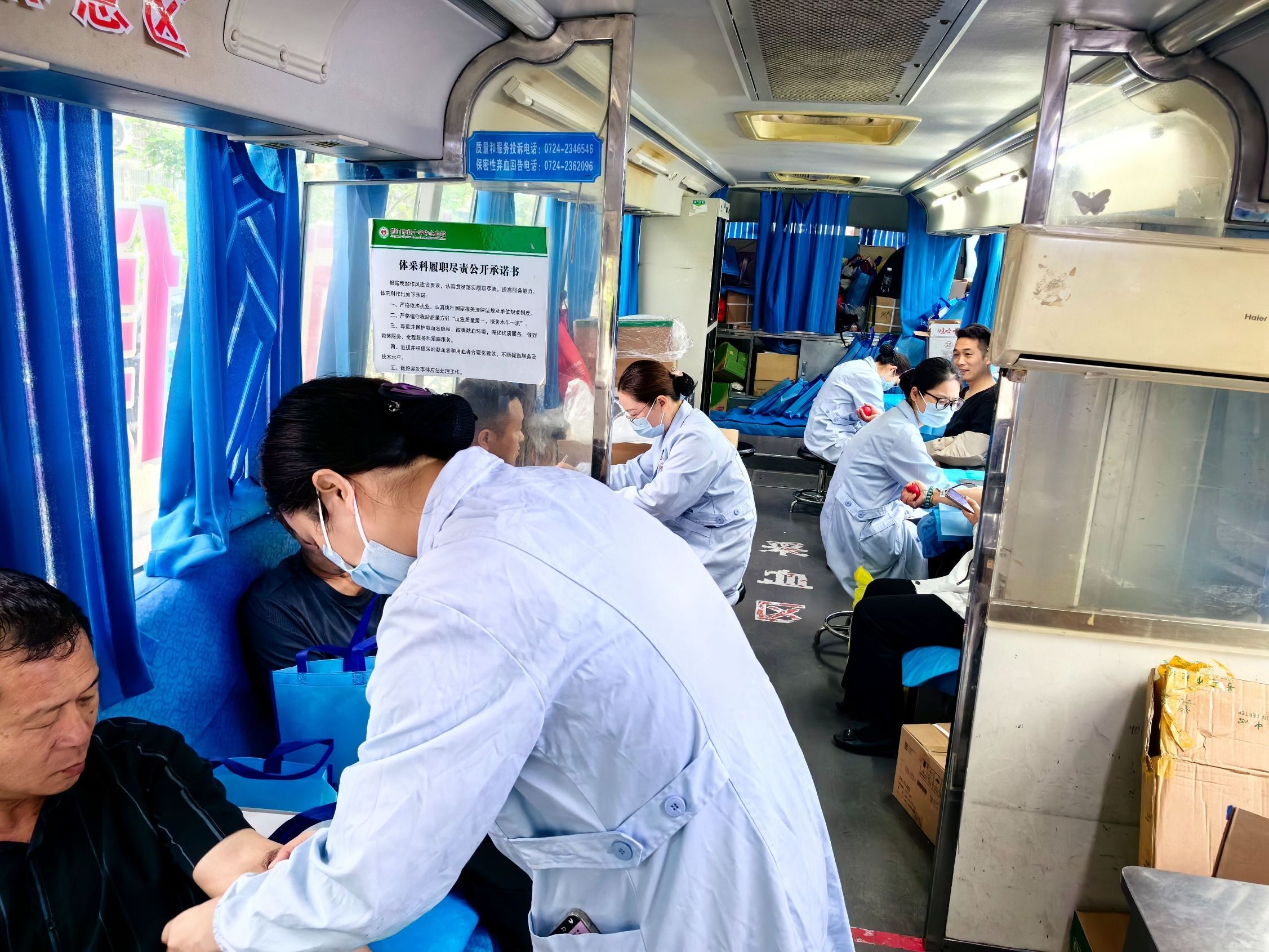 4月19日早上8點(diǎn),永興街道鎮(zhèn)中路永興大禮堂門前駛來(lái)一輛流動(dòng)獻(xiàn)血車,永興社區(qū)衛(wèi)生服務(wù)中心工作人員張曉華卷起袖子,正準(zhǔn)備登記獻(xiàn)血信息?!奥?tīng)說(shuō)今天上午有獻(xiàn)血活動(dòng),我們一大早就來(lái)了。這些年來(lái),我已經(jīng)累計(jì)獻(xiàn)血