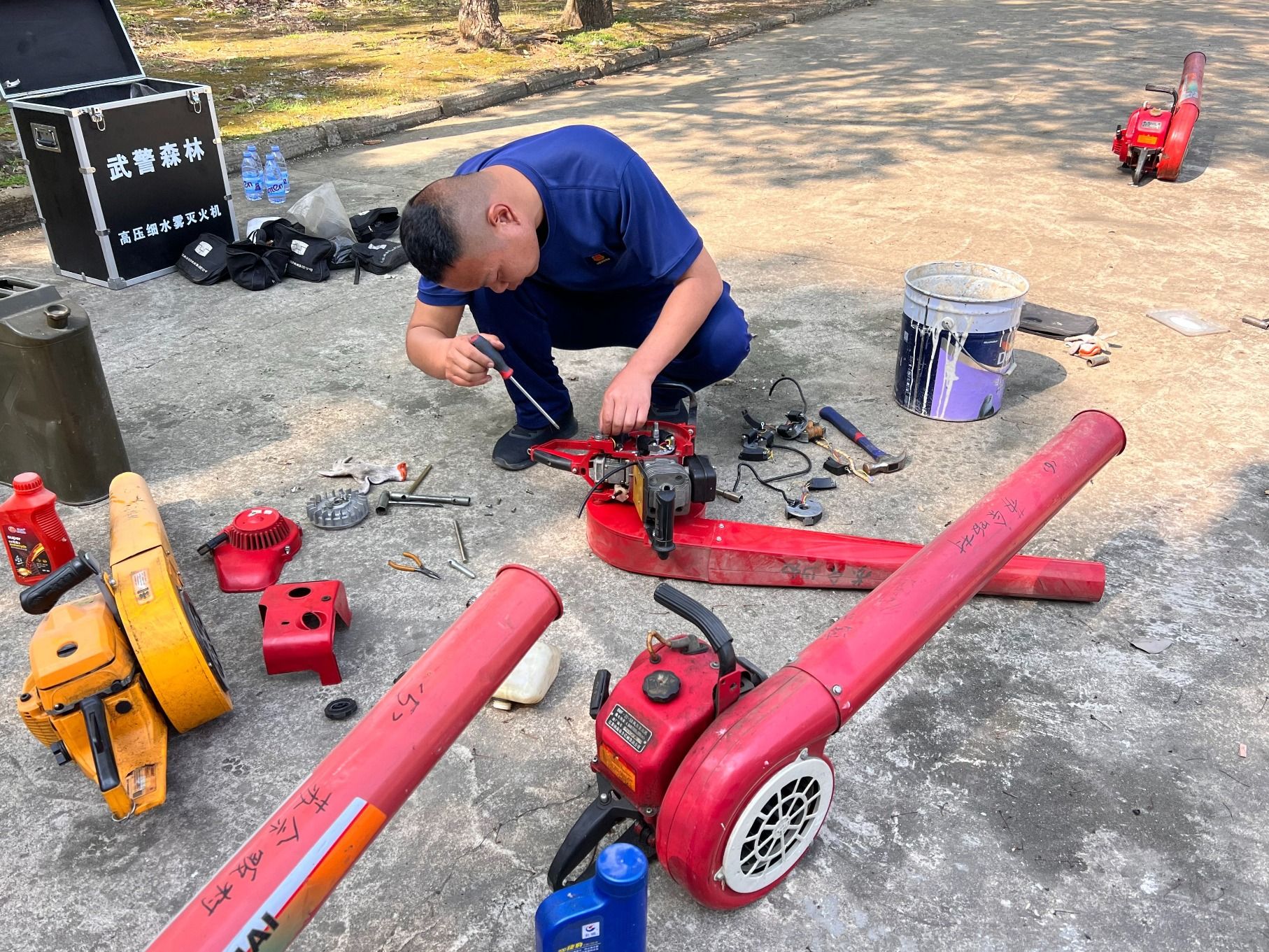 “要對損害的零件進(jìn)行及時(shí)維修和更換,補(bǔ)充備用機(jī)油、汽油,使滅火機(jī)具性能保持最佳狀態(tài),萬一發(fā)生火情和突發(fā)事件就能夠及時(shí)處置……”4月8日,永興街道農(nóng)業(yè)農(nóng)村局組織20余名半專業(yè)撲火隊(duì)員,對森林防滅火機(jī)具設(shè)