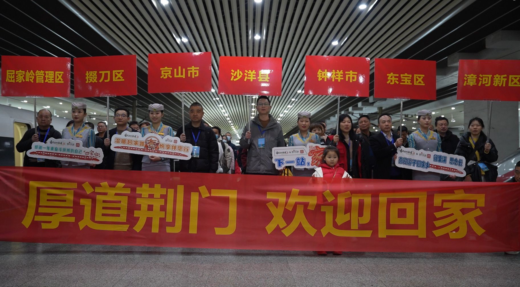 1月12號(hào)6時(shí)32分,荊門(mén)市2025年“圓夢(mèng)高鐵 接您回家”首趟免費(fèi)返鄉(xiāng)專列在廣州南站幸福啟程,滿載近千名荊門(mén)籍在粵經(jīng)商務(wù)工人員從廣州出發(fā)直達(dá)荊門(mén)。