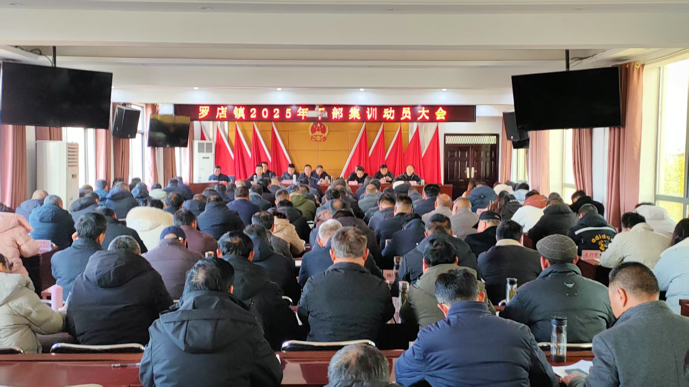 | 2月8日上午,羅店鎮(zhèn)召開了2025年干部集訓(xùn)動員大會,全體村(社區(qū))支部書記、鎮(zhèn)直單位負(fù)責(zé)人、三大中心人員、包村干部參加會議。會議傳達(dá)了中央經(jīng)濟(jì)工作會議精神、湖北省加快建成中部地區(qū)崛起重要戰(zhàn)略支點會議... |