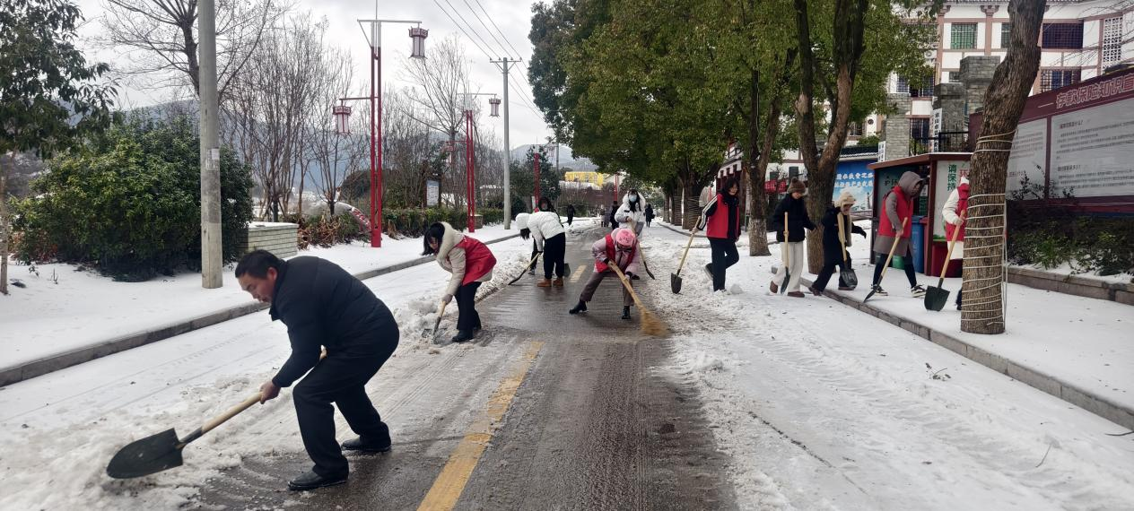溫泉街道組織機(jī)關(guān)干部鏟除積雪。