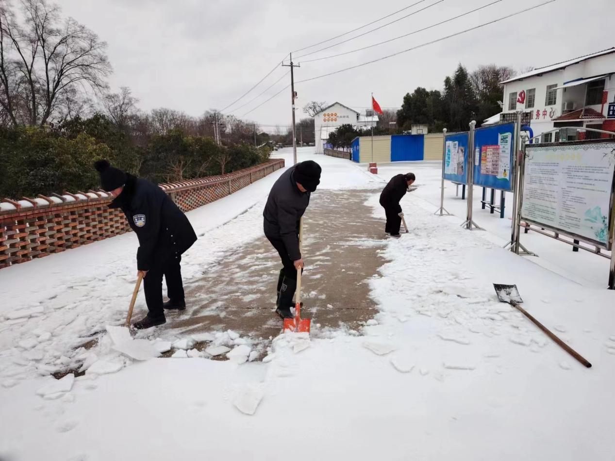 市水利和湖泊局組織黨員干部除雪鏟冰,保障道路通暢及安全。
