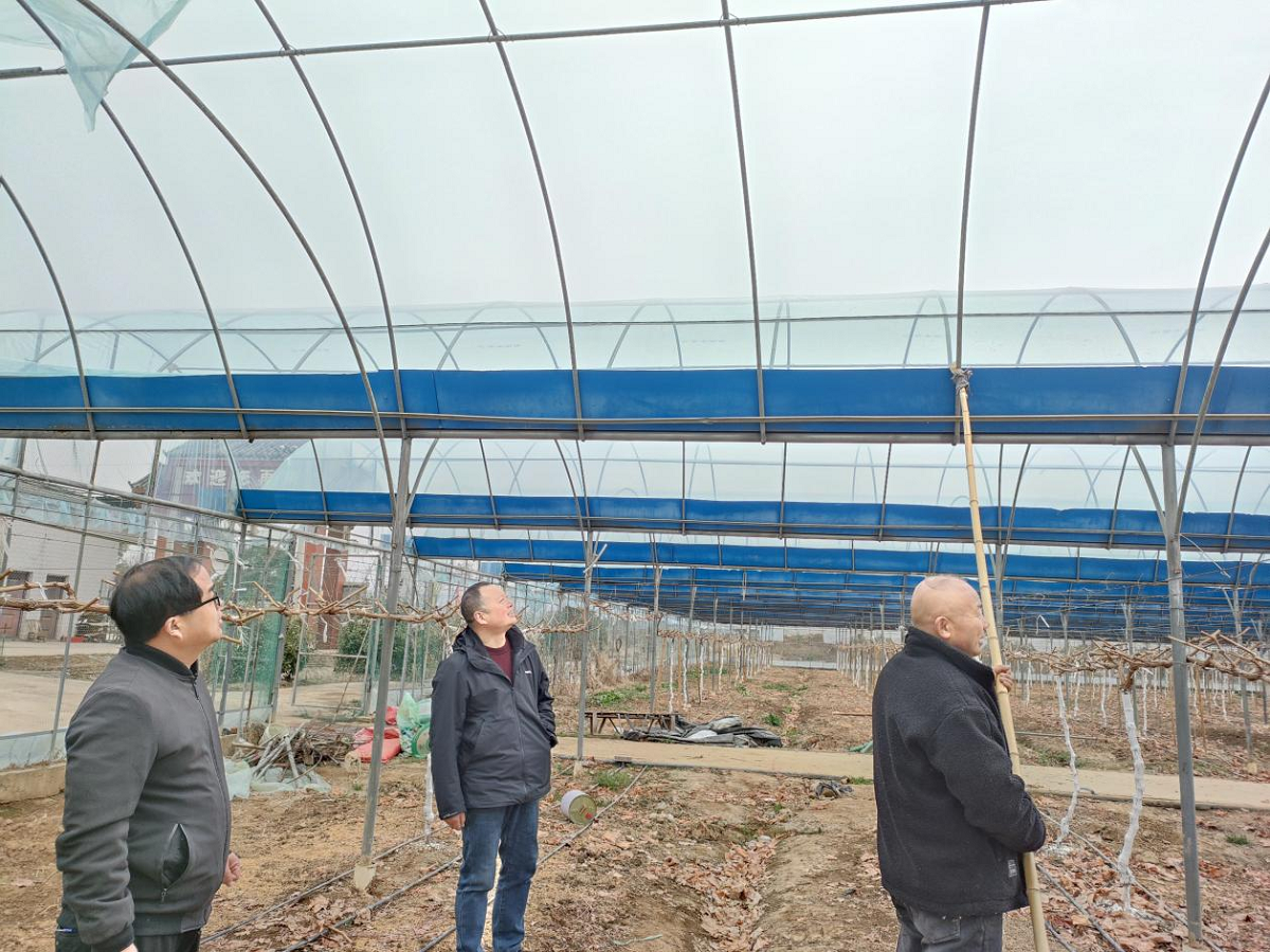 | “幸虧農(nóng)技專家及時提醒,我們組織工人連夜除冰增溫,十幾個葡萄大棚經(jīng)受住了昨晚大雪的考驗,沒有受到損失?!?月22日下午,京山市孫橋鎮(zhèn)禾之果現(xiàn)代農(nóng)業(yè)產(chǎn)業(yè)園經(jīng)理熊行兵對前來查看大棚情況的農(nóng)技人員李琴連連道 |