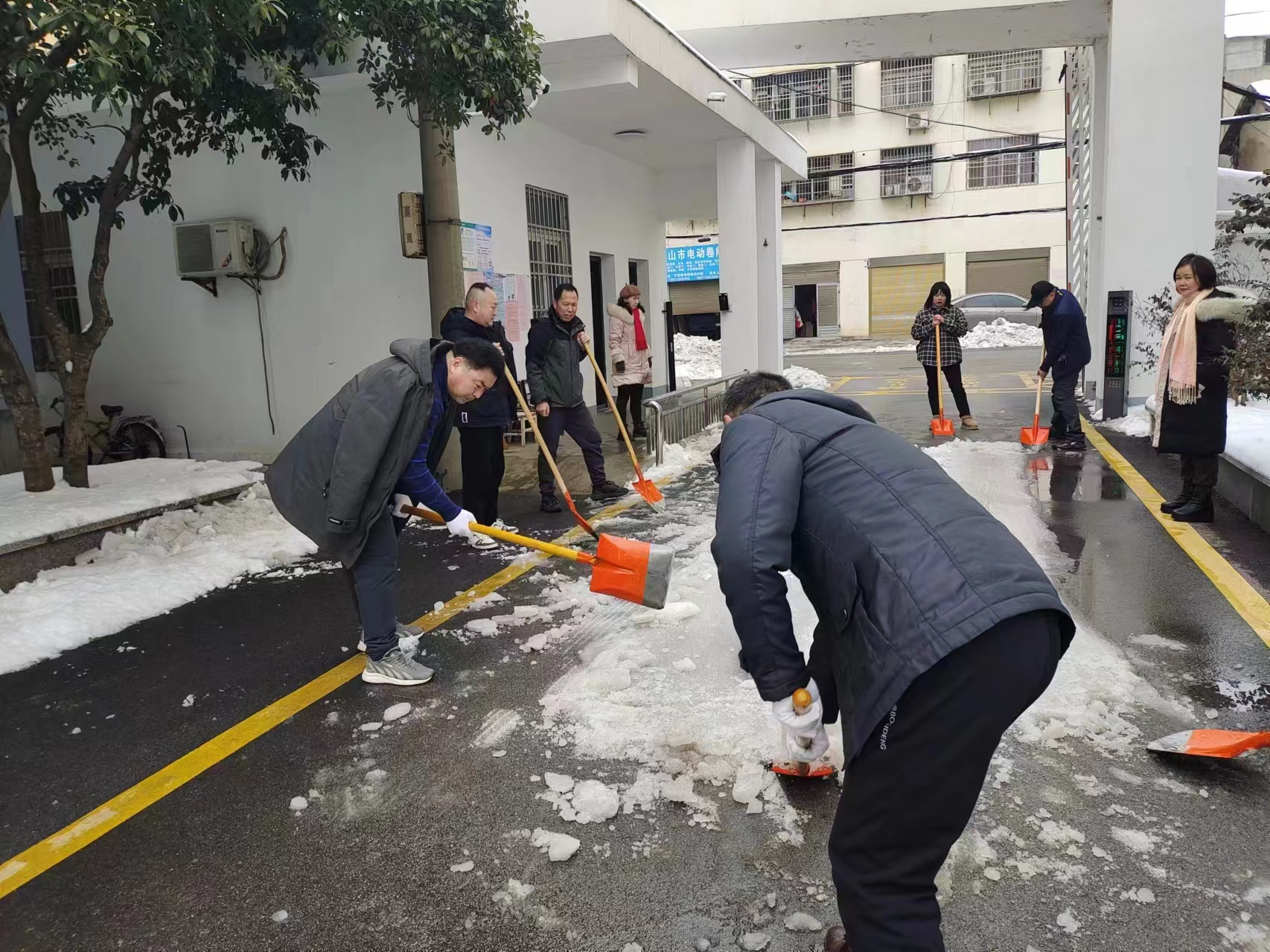 | 2月4日,迎來強(qiáng)降雪天氣,錢場鎮(zhèn)轄區(qū)內(nèi)多條道路出現(xiàn)嚴(yán)重積雪和結(jié)冰濕滑現(xiàn)象,給群眾出行帶來諸多不便。錢場鎮(zhèn)黨委以雪為令,全力以赴抓好掃雪除冰工作,應(yīng)對極端天氣,保障道路暢通,切實(shí)維護(hù)群眾正常生產(chǎn)生活秩序 |