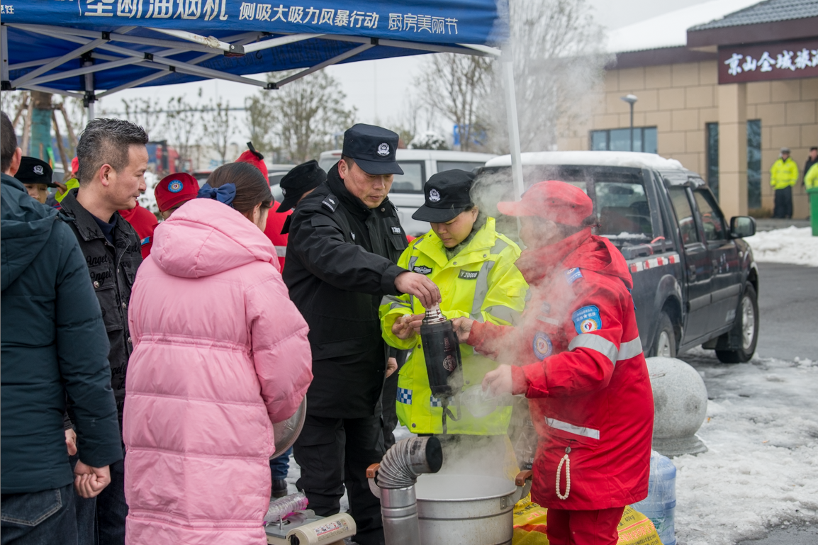 | 根據(jù)市委、市政府統(tǒng)一部署,我市統(tǒng)籌集中社會各界力量,全力以赴在高速、國道沿線開展融雪除冰、疏堵保暢、安置旅客等“敲窗行動”,確保全市高速路段及主要干道安全暢通。“承楓”義警幫群眾裝開水2月6日上午,市 |
