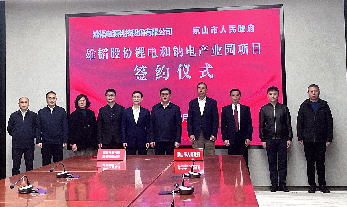 | 2月8日,雄韜股份鋰電和鈉電產(chǎn)業(yè)園項(xiàng)目簽約儀式舉行。荊門(mén)市委書(shū)記胡亞波,市委副書(shū)記、市長(zhǎng)陳家偉,副市長(zhǎng)劉國(guó)芳,雄韜集團(tuán)董事長(zhǎng)張華農(nóng),雄韜股份鋰電超級(jí)工廠(chǎng)總經(jīng)理郭盼,京山市委書(shū)記張勇出席儀式并見(jiàn)證簽 |