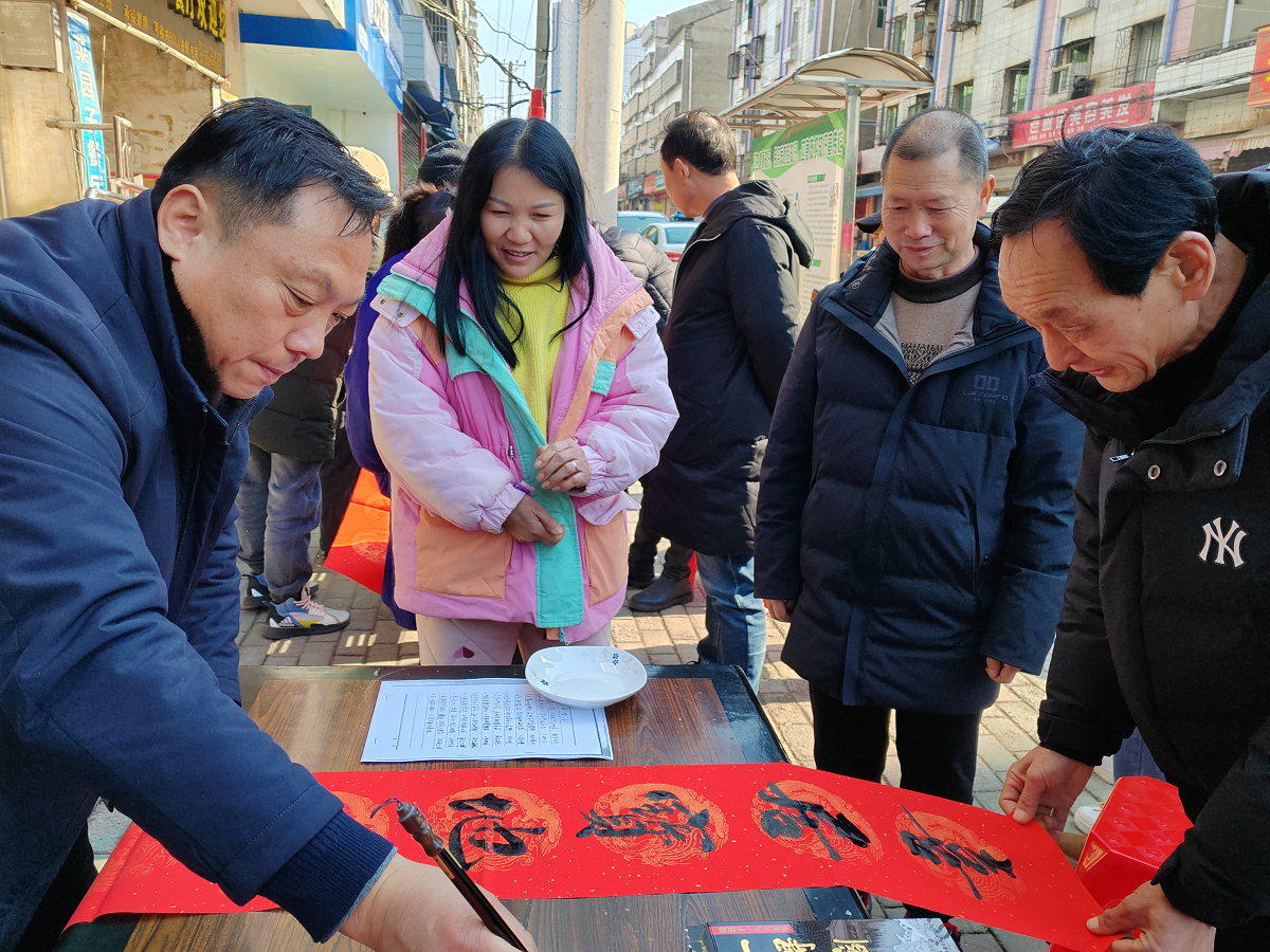 | 1月25日下午,市文聯(lián)、市楹聯(lián)學(xué)會志愿者來到新市街道青年路社區(qū),為周邊居民“寫春聯(lián)送祝?!?,送去龍年新春的問候。活動現(xiàn)場格外熱鬧,前來參加活動的居民絡(luò)繹不絕。志愿者們鋪好宣紙,蘸飽墨汁、紅紙落墨,認(rèn)真 |
