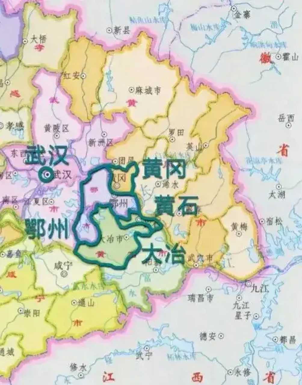 由武漢、黃石、鄂州、孝感、黃岡、咸寧、仙桃、天門(mén)、潛江九個(gè)城市組成的武漢都市圈,武漢、鄂州、黃石、黃岡是其核心區(qū)。