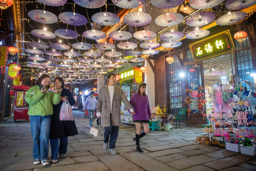 游客在萬州天生城文旅街區(qū)參觀游覽(2023年11月27日攝)。新華每日電訊記者 唐奕 攝