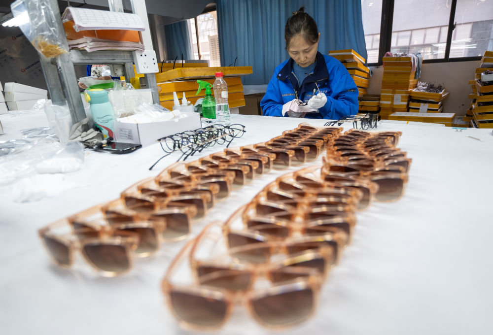 奉節(jié)生態(tài)工業(yè)園區(qū)內(nèi),重慶萬大眼鏡有限公司的員工在忙碌(2023年11月28日攝)。新華每日電訊記者 肖藝九 攝