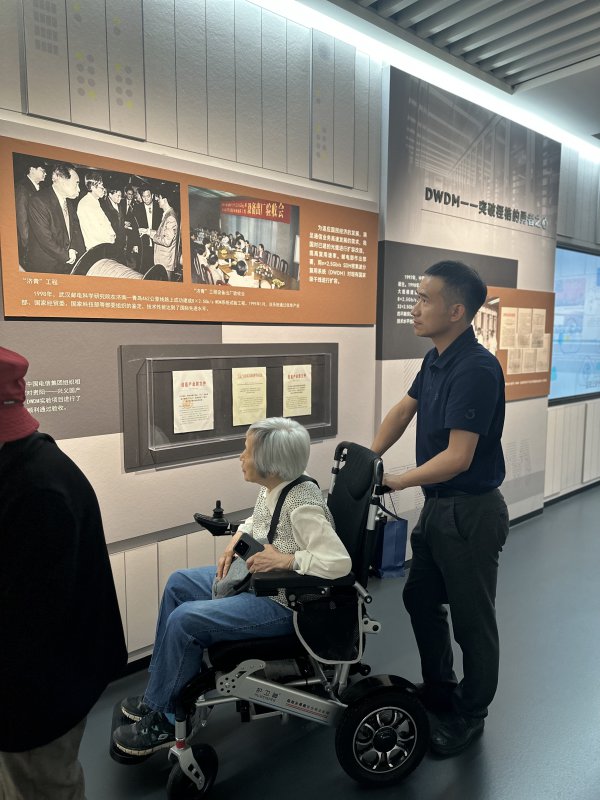 中國光纖之父、趙梓森院士的夫人范幼英在“濟(jì)青工程”展區(qū)久久停駐。長江日報記者馮雪 攝