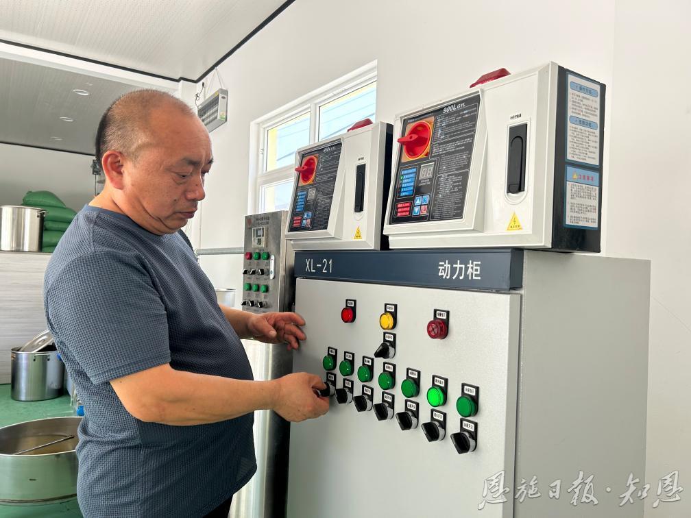 2025年6月16日, 容華食品負(fù)責(zé)人彭容調(diào)試半自動生產(chǎn)線。
