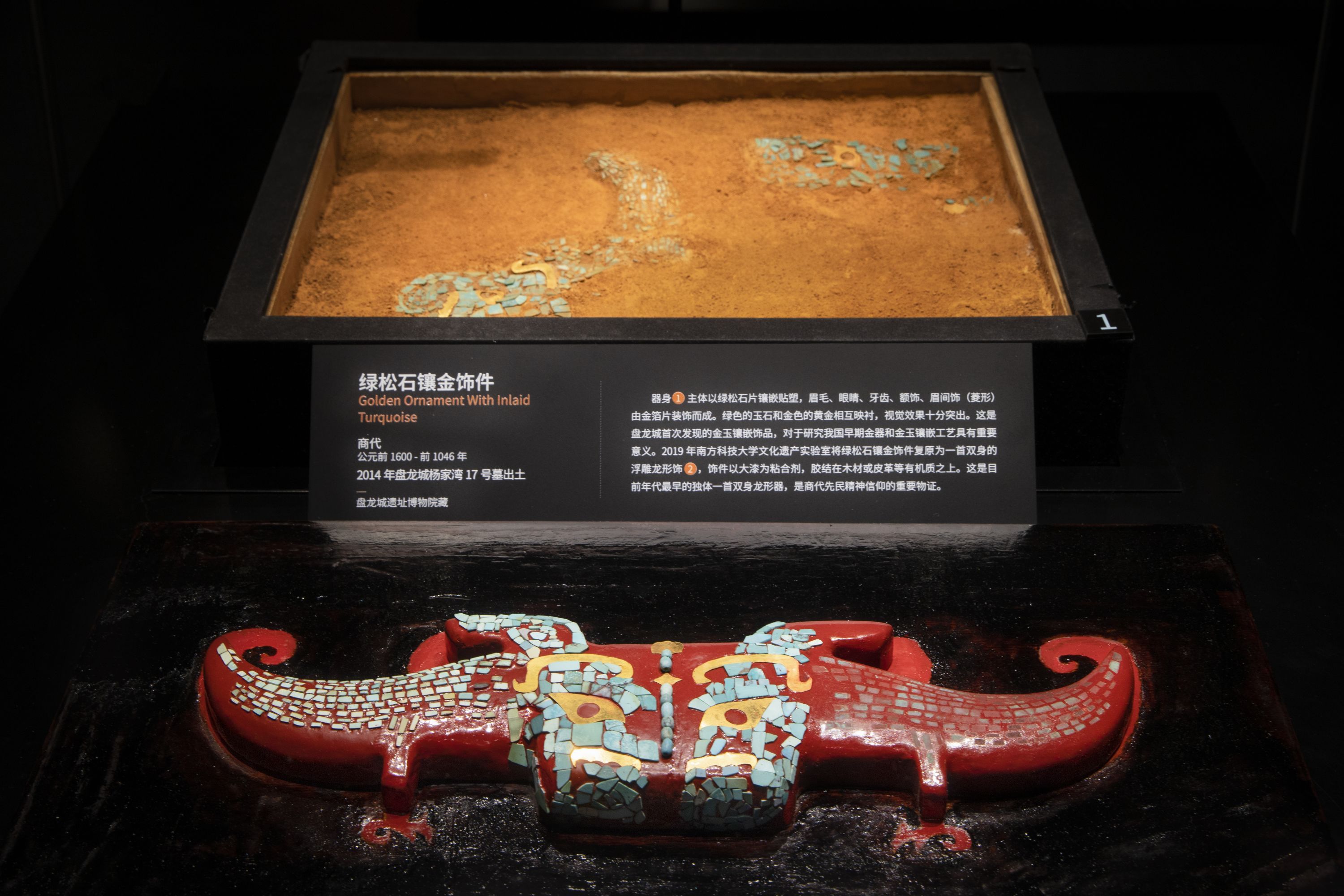 自1954年起,70年來(lái),發(fā)掘面積僅2萬(wàn)平方米的盤(pán)龍城遺址,以3000多件珍貴出土文物,再現(xiàn)了許多商代早期之最:出土青銅器、玉器同期最多;85厘米高的大圓鼎、94厘米長(zhǎng)的大玉戈、直徑22厘米的有領(lǐng)玉璧均為現(xiàn)存體量最大;發(fā)現(xiàn)殉人的李家嘴2號(hào)墓為同期墓葬等級(jí)最高;由數(shù)百片綠松石和金片組成的鑲金飾件,則是目前中國(guó)所見(jiàn)最早的金玉飾件。