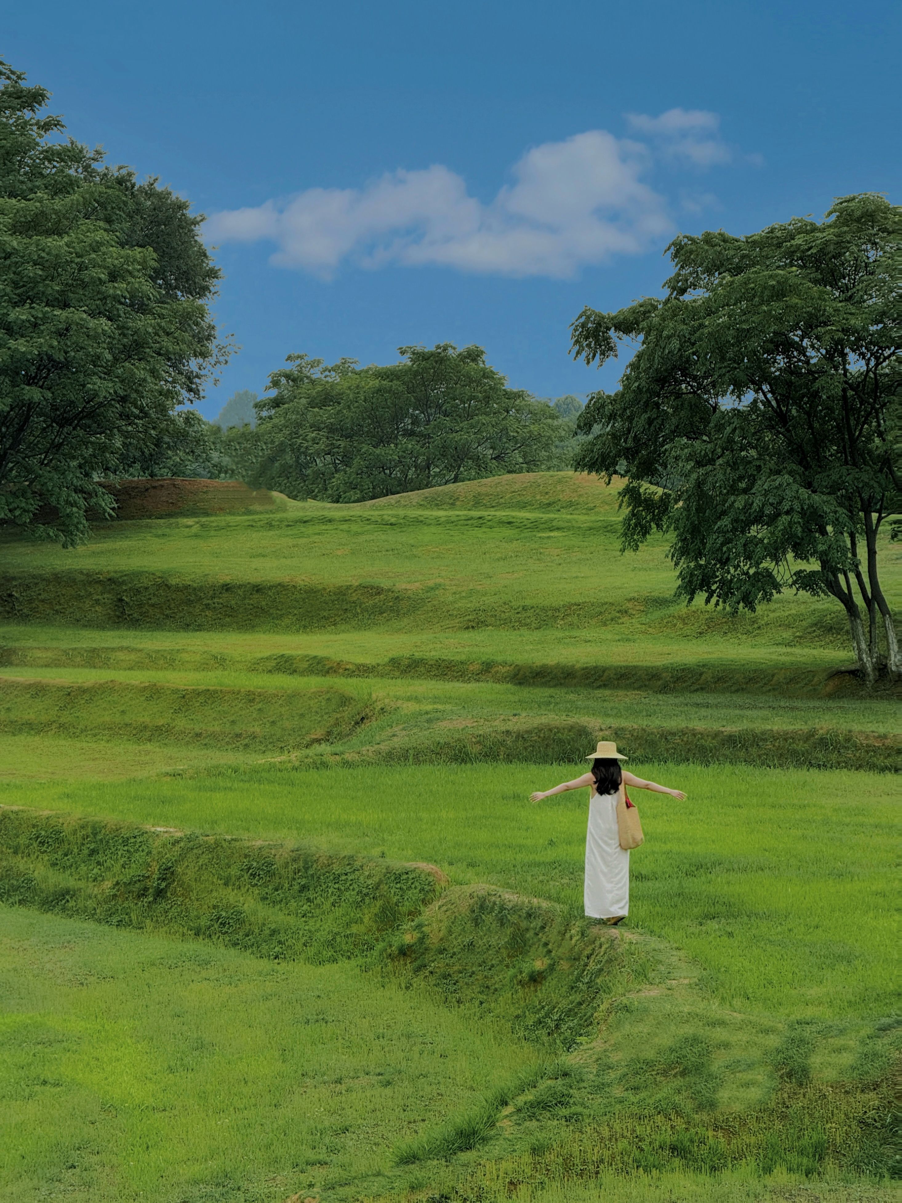 在社交媒體小紅書(shū)上,關(guān)于盤(pán)龍城國(guó)家考古遺址公園有1萬(wàn)多條“筆記”,博物院一側(cè)的臺(tái)階因兩旁的洞石建筑外立面,成了熱門(mén)拍照“打卡點(diǎn)”。宮殿旁沿著階梯地形而鋪的草坪,被網(wǎng)友們稱(chēng)為“現(xiàn)實(shí)版的綠野仙蹤”。