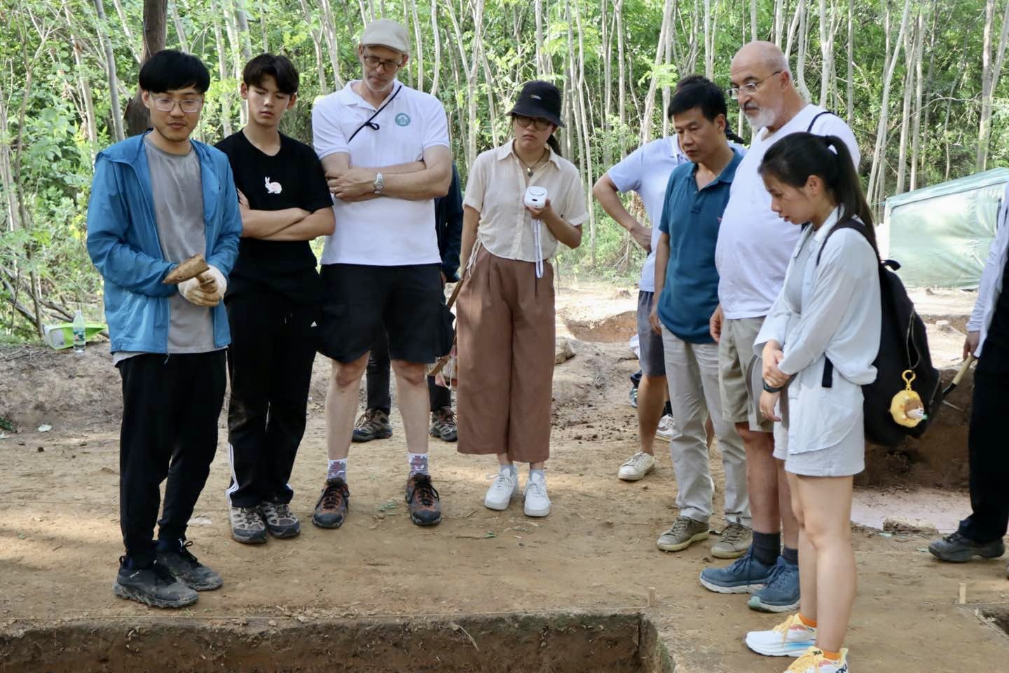 盤(pán)龍城國(guó)際田野考古暑期學(xué)校師生合照,右一為孫卓。孫卓供圖