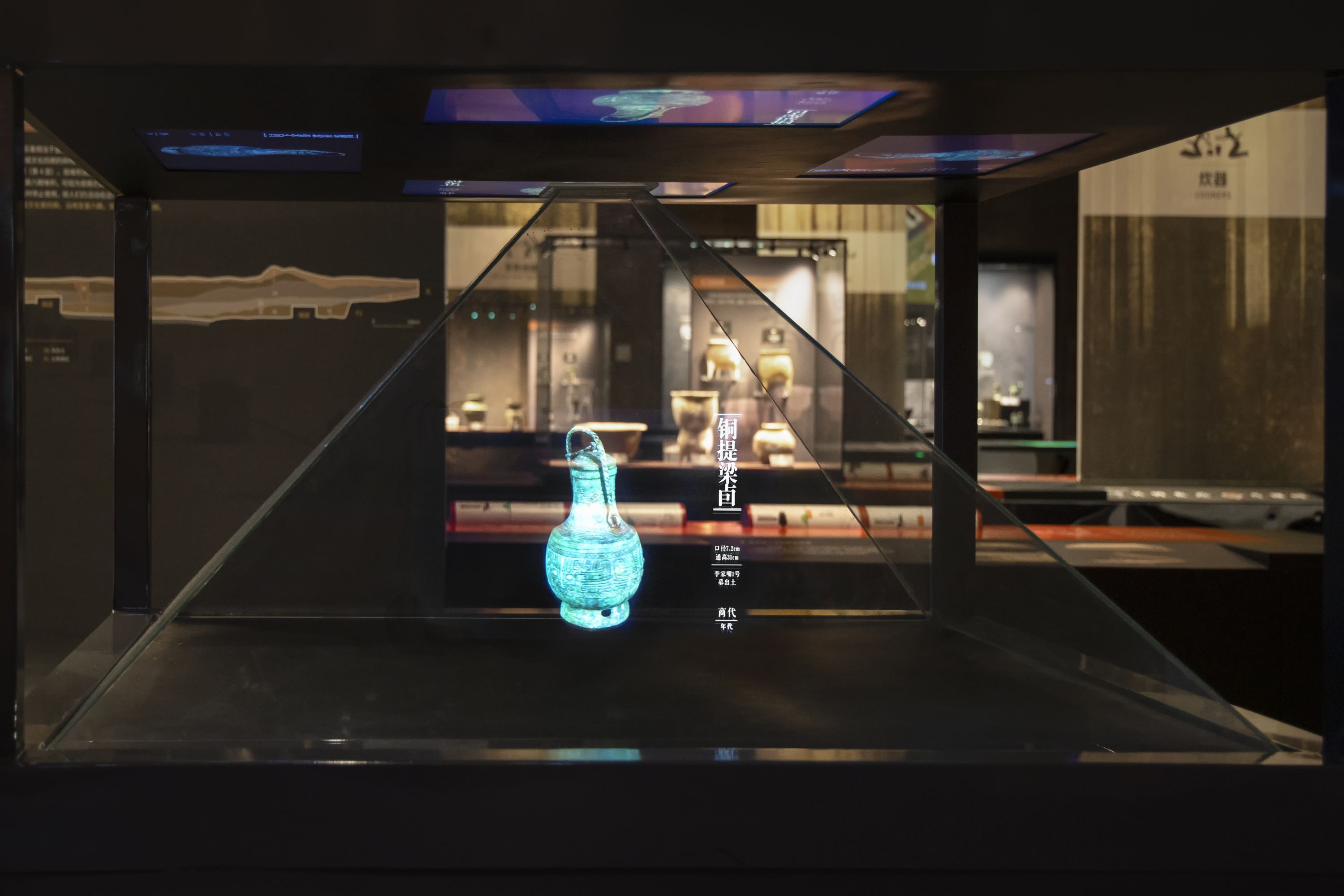 全息投影展示盤(pán)龍城遺址出土的青銅器。