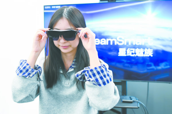 消費(fèi)者體驗(yàn)武漢獨(dú)角獸企業(yè)星紀(jì)魅族生產(chǎn)的AR眼鏡。長(zhǎng)江日?qǐng)?bào)記者史偉 攝