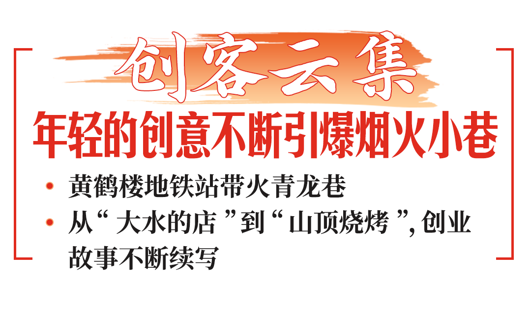 距地鐵站50米開外,是黃鶴樓腳下的一條背街小巷——青龍巷,“正宗熱干面”“武漢特色文創(chuàng)”的吆喝聲吸引一眾打卡的游客聞聲而往。
