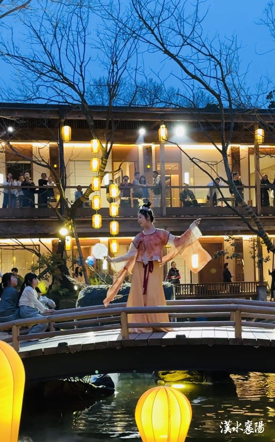 如今的襄陽院子,早已成為兼具顏值與內(nèi)涵的文旅打卡地。園區(qū)不僅有沉浸式江南景致與地道美食,更精心打造了多元休閑體驗(yàn)場(chǎng)景:每天晚上,國(guó)風(fēng)舞蹈、三國(guó)情景劇、武俠主題互動(dòng)輪番上演,氛圍感拉滿;圍爐煮茶區(qū)、曬秋打卡點(diǎn)等網(wǎng)紅場(chǎng)景成功出圈,吸引市民和游客紛紛前來打卡留念。