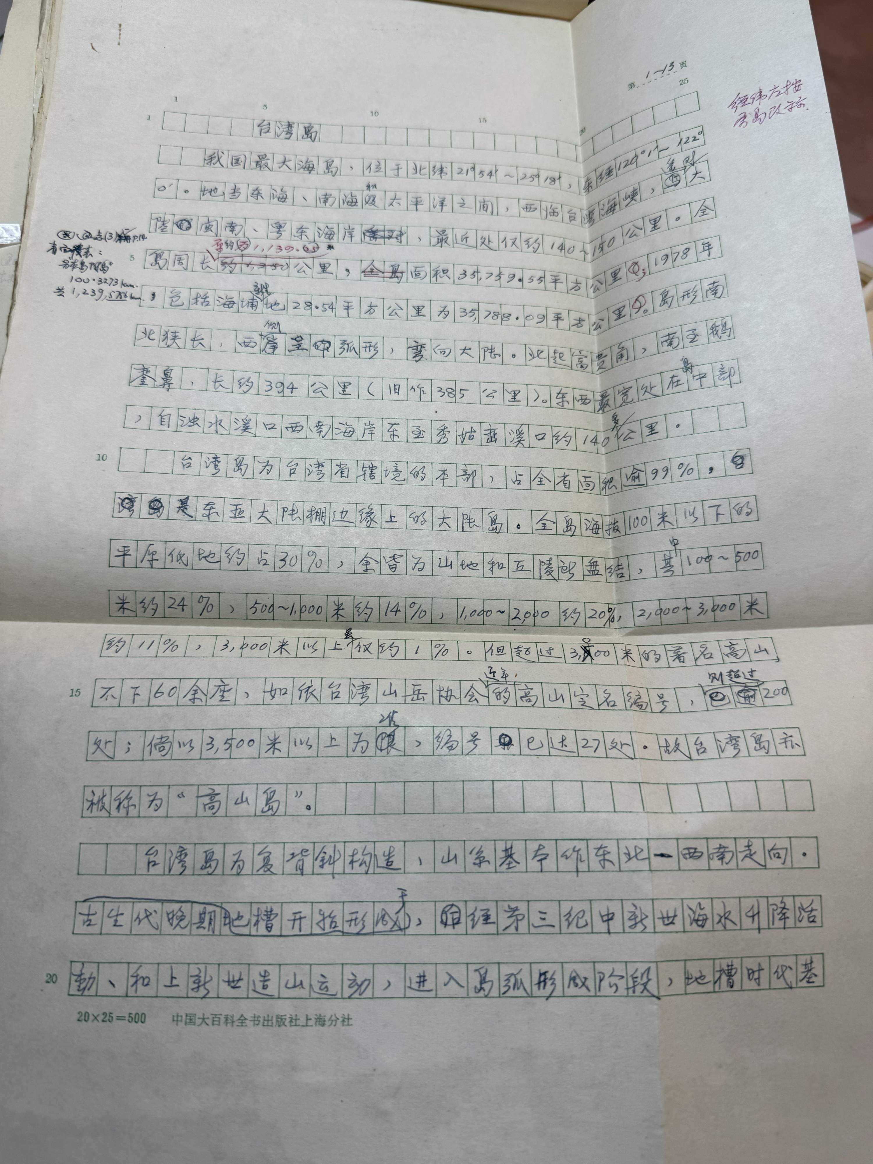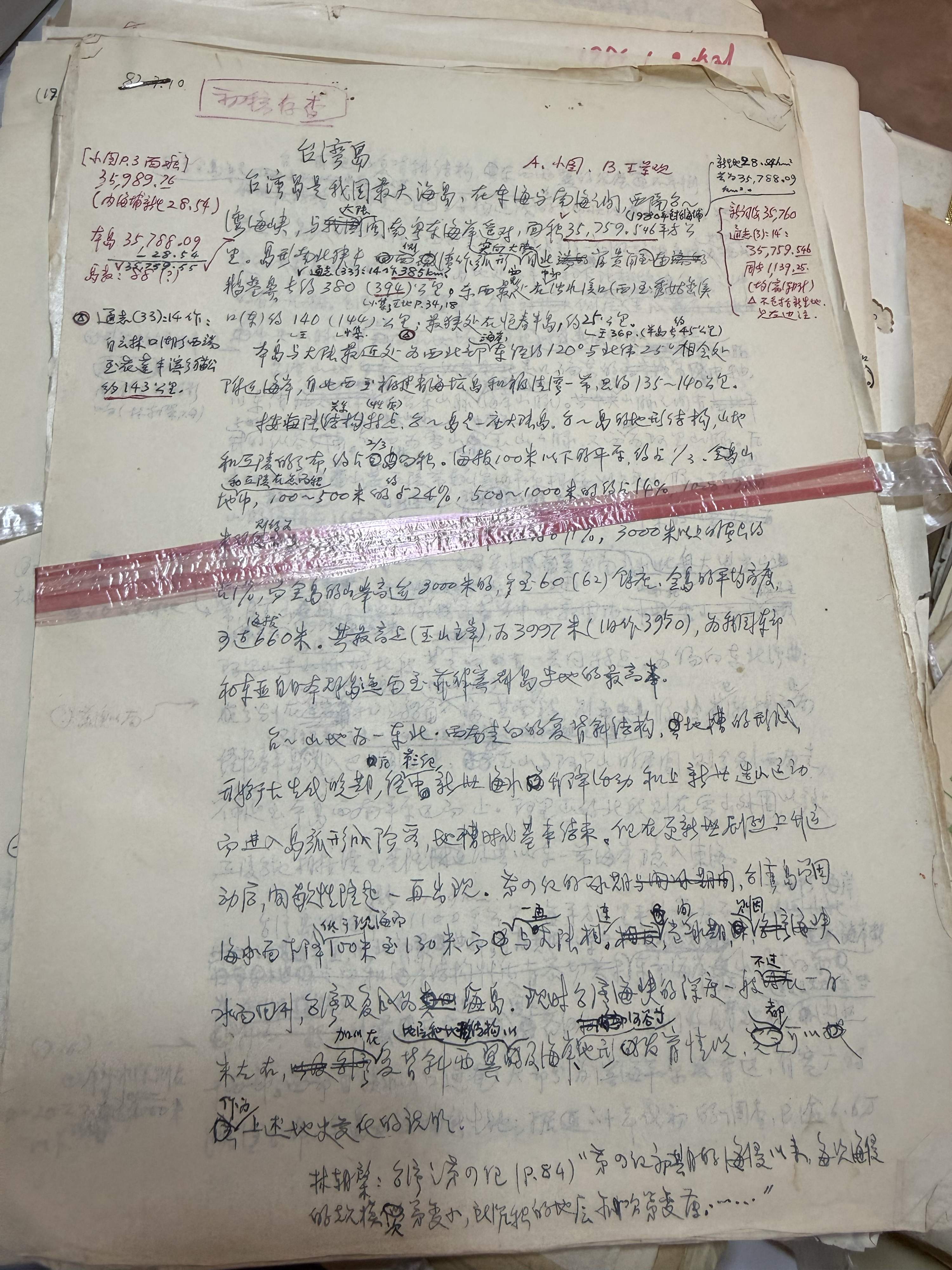 留存的手稿上,每一頁都被寫得密密麻麻,全是關(guān)于臺灣的地理考察、地名考據(jù)、資料整理?!半y以想象,在沒有電腦的年代,靠手寫完成這樣一本著作。”邱如瑩感嘆。